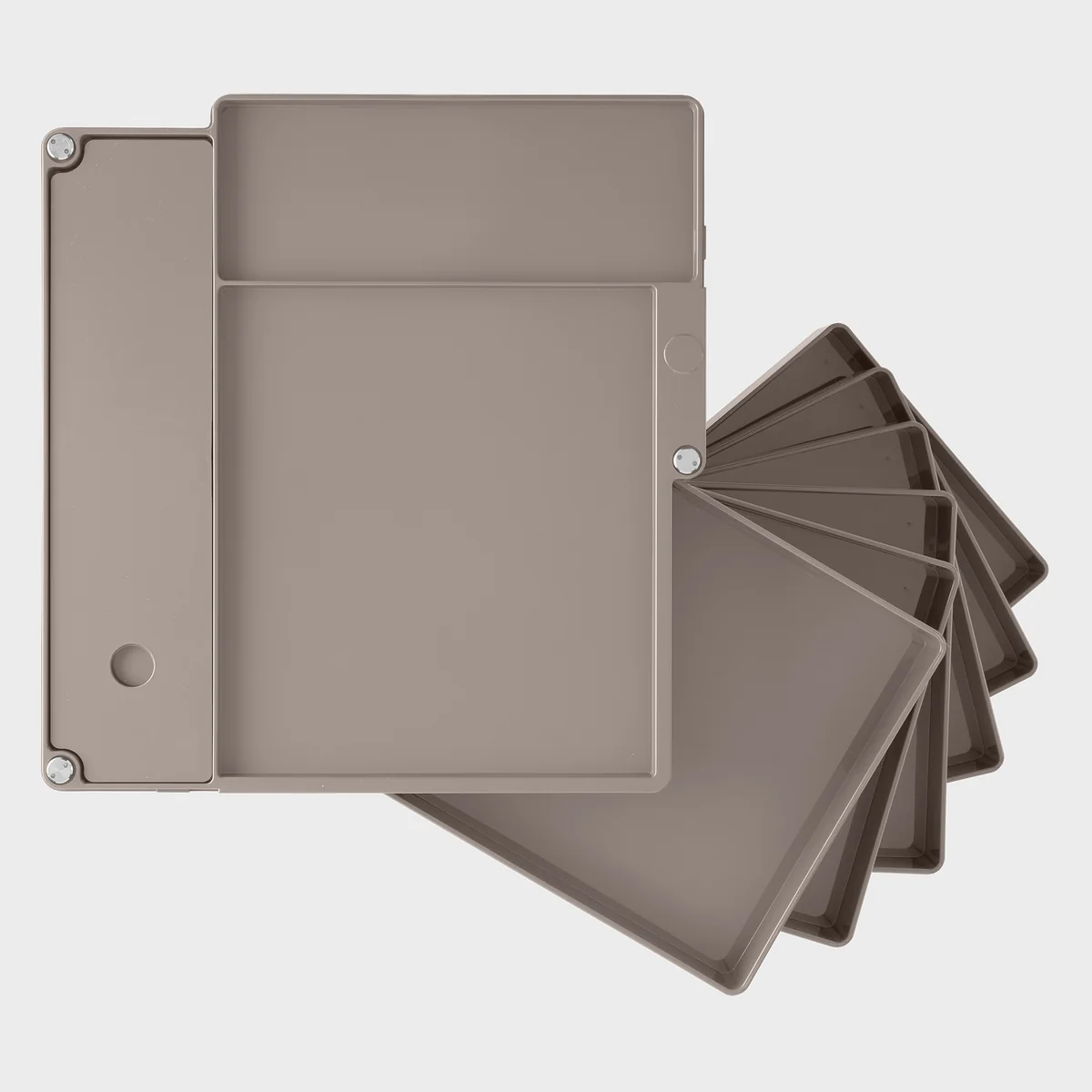 Joe Collombo's rolcontainer is gemaakt van gemakkelijk schoon te maken, spuitgegoten ABS-kunststof. Hij vindt evenveel toepassing in de hobbykelder als in de professionele werkplaats, in de kapsalon, in winkels of in de badkamer.