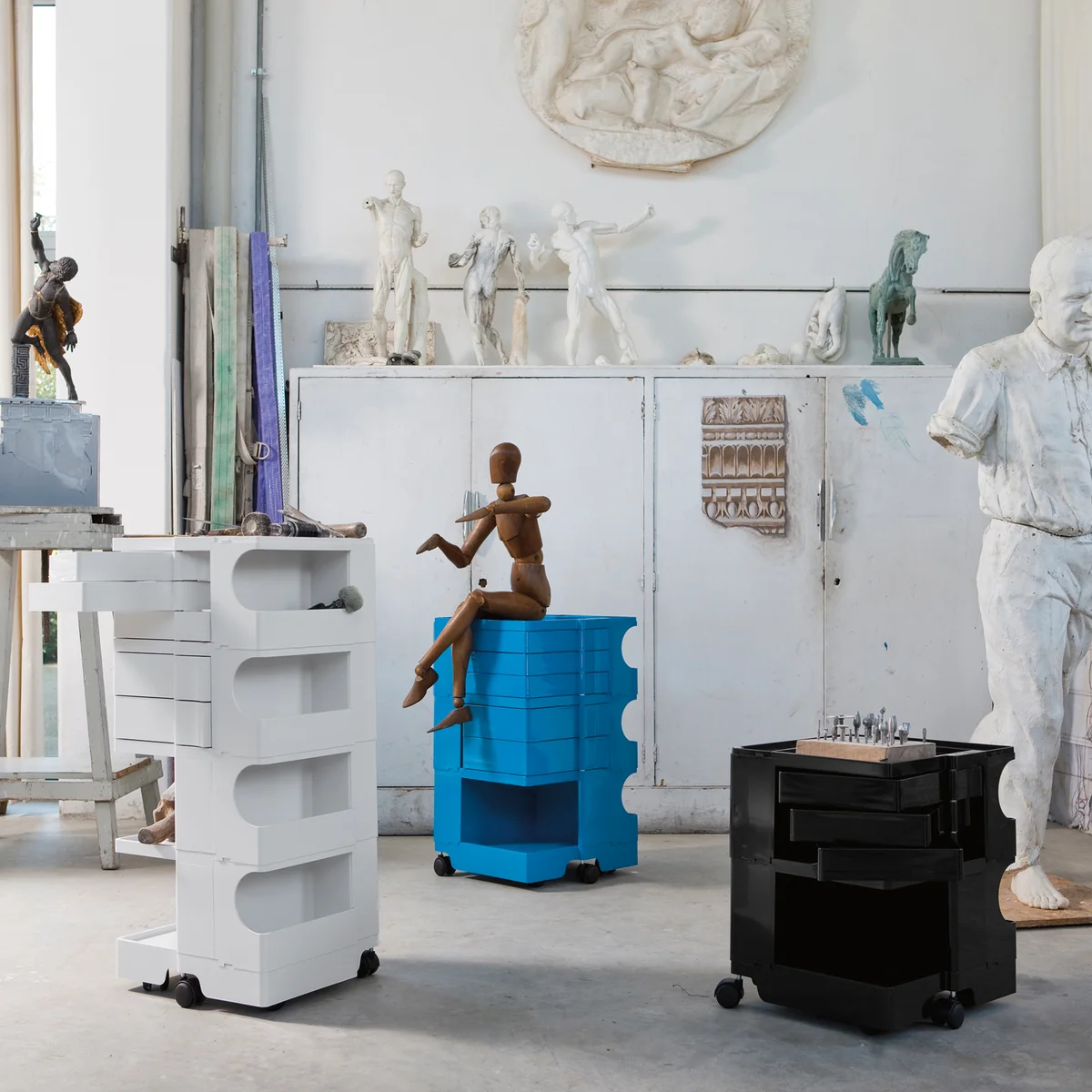 Joe Colombo's Boby Trolley, een mooie en praktische oplossing voor alle ruimtes waar orde nodig is, of het nu gaat om kleine onderdelen of papieren in het huishouden, in de werkplaats of op kantoor. Joe Collombo's trolley van B-Line houdt orde op zaken.
