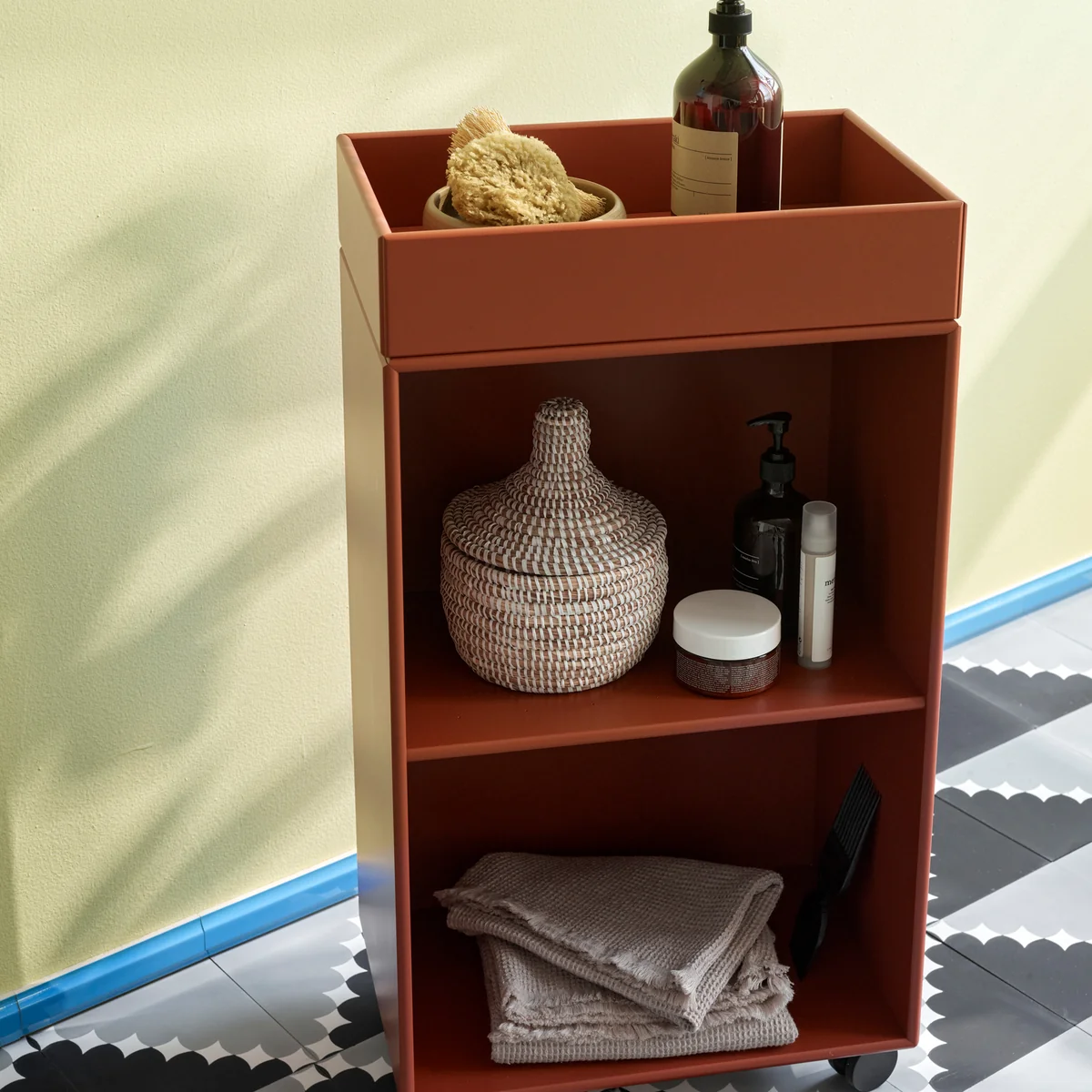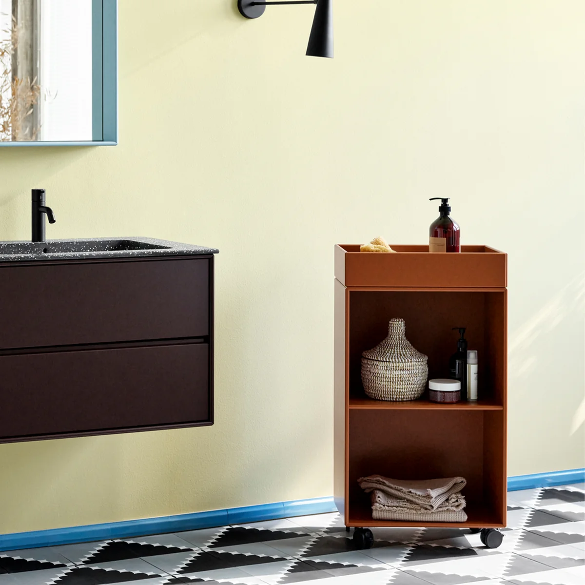 Met de Preppy trolley van Montana verandert u de badkamer in een privé wellnessoase. De badkamer trolley biedt voldoende opbergruimte voor juwelen, verzorgingsproducten of schoonmaakproducten. Het stijlvolle meubilair heeft een klassieke uitstraling en kan op vele manieren worden gecombineerd. Handdoeken kunnen ook handig in de kast worden opgeborgen en zijn altijd binnen handbereik. Het ontwerp, dat verkrijgbaar is in verschillende kleurvarianten, is afkomstig van het talent van Peter J-Lassen.