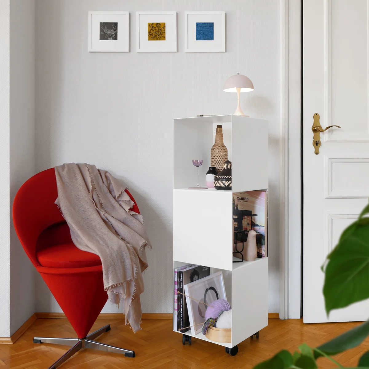 De 2 zijdige mobiele container van vonbox is een veelzijdige en flexibele container die ideaal is voor gebruik op kantoor en in privé woonruimtes. Het doordachte design maakt een comfortabele toegang van alle kanten mogelijk, zonder storende achterwanden, wat talrijke gebruiks- en inrichtingsmogelijkheden biedt. De robuuste wielen zorgen voor een veilige verplaatsing op verschillende vloerbedekkingen zoals parket en tapijt, waardoor de 2side Rolltainer moeiteloos naar elke gewenste locatie verplaatst kan worden. Hij biedt voldoende ruimte voor maximaal 12 brede ordners en combineert functionaliteit met een modern, stijlvol uiterlijk. In woonkamers kunnen de ruime vakken individueel worden gedecoreerd en aangepast, waardoor de 2side Rolltainer een echte allrounder wordt. Een highlight voor elk interieur!