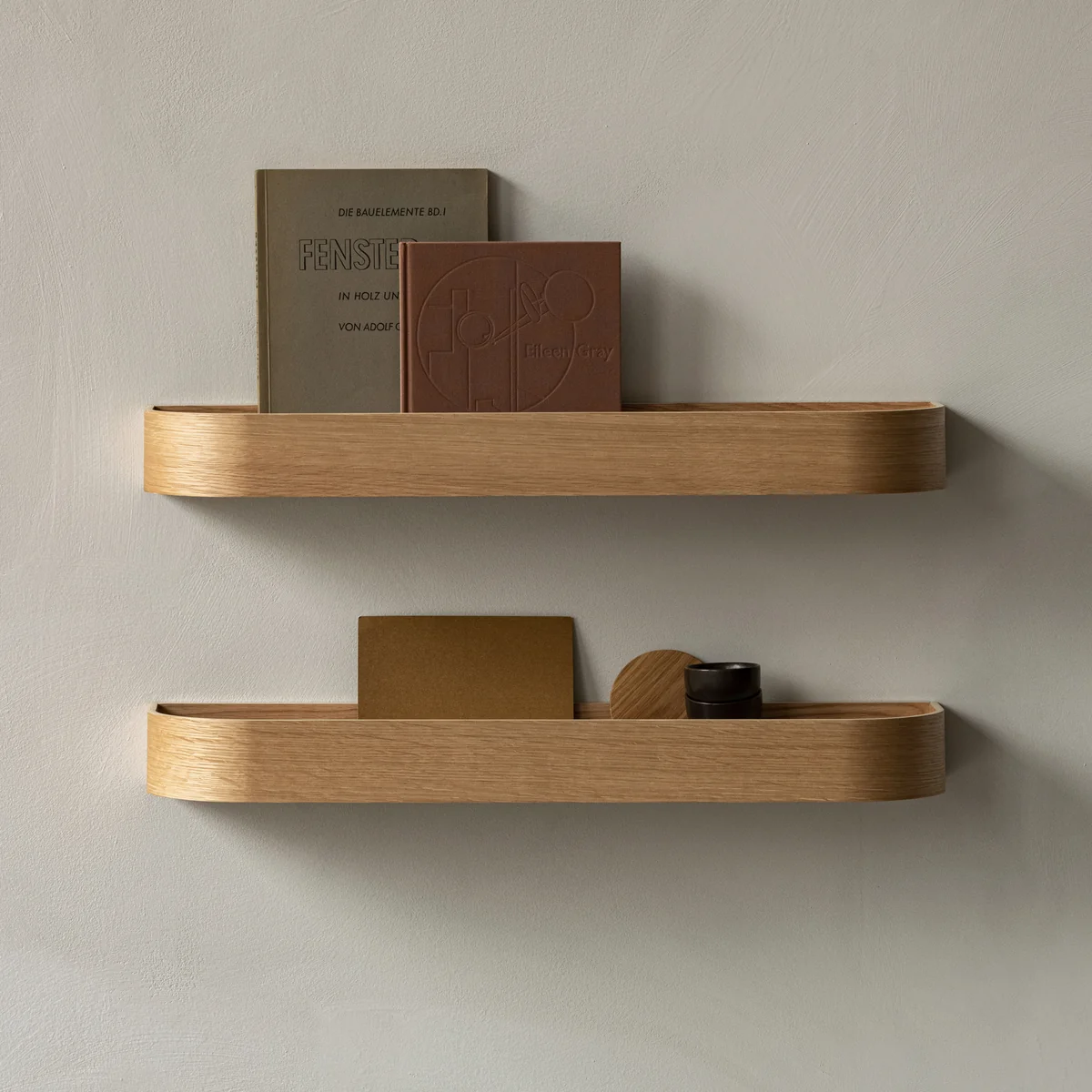 De Epoch Audo wandplank van brengt minimalistische charme in elke kamer. Met zijn slanke look is hij ideaal voor het uitstallen van boeken, decoraties of foto's in elke kamer. Het ontwerp is van de ontwerper Nina Bruun.