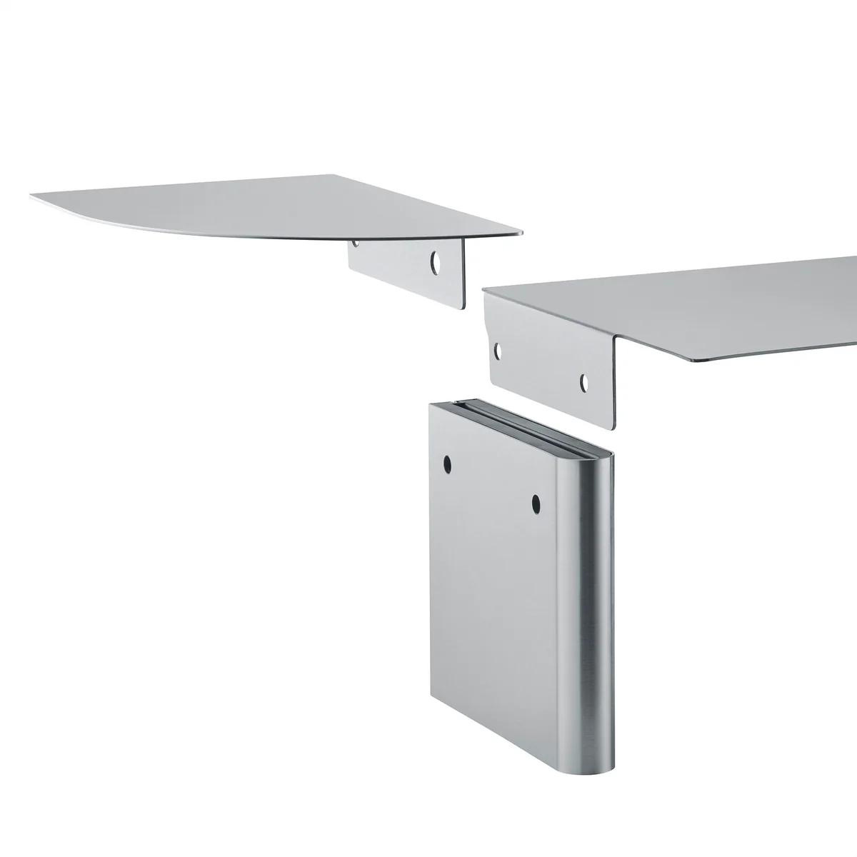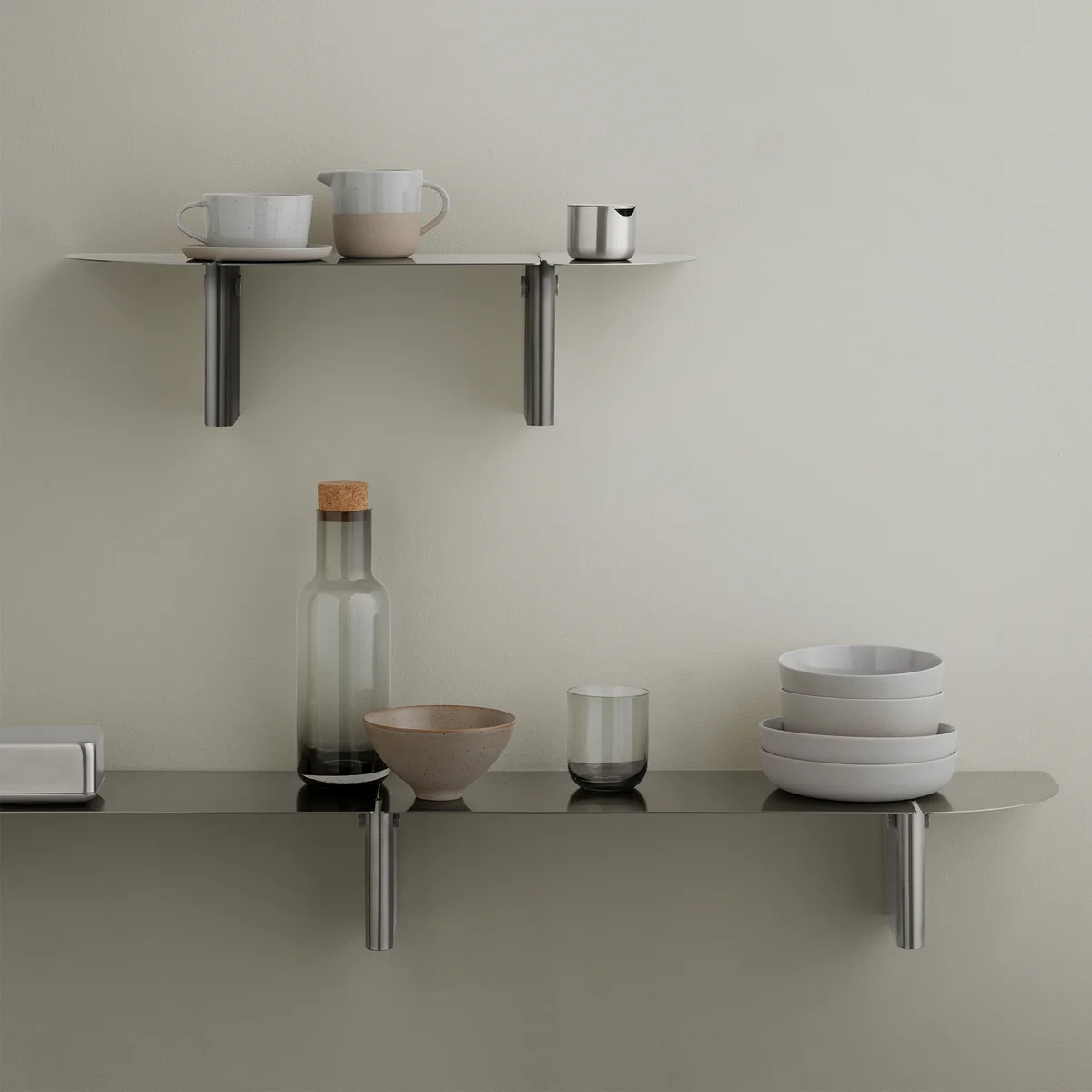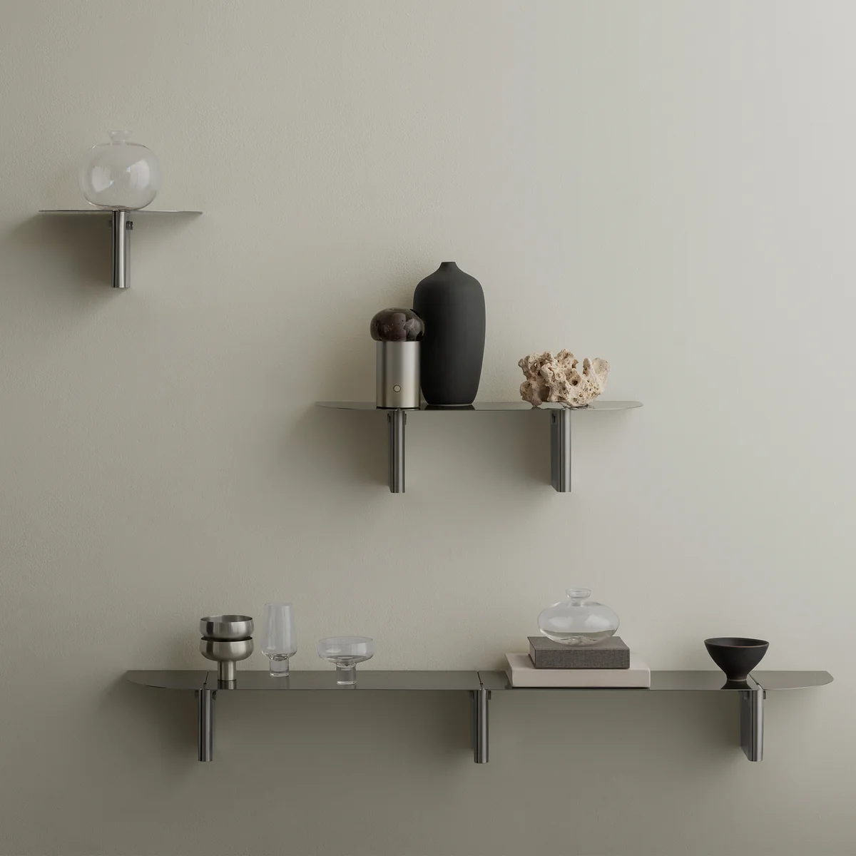 De wandplank is gemaakt van hoogwaardig roestvrij staal en combineert stabiliteit met sculpturale elegantie. De opvallende stalen platen ogen delicaat en licht - en creëren tegelijkertijd moderne, grafische accenten in de kamer. Als enkel stuk of als modulaire combinatie: Oru past zich flexibel aan - in de gang, woonkamer, slaapkamer of keuken. De plank biedt talloze ontwerpmogelijkheden: als stijlvolle opberger, boekenplank, nachtkastje of zwevend decoratief element. Een designobject dat functie en esthetiek perfect combineert.
