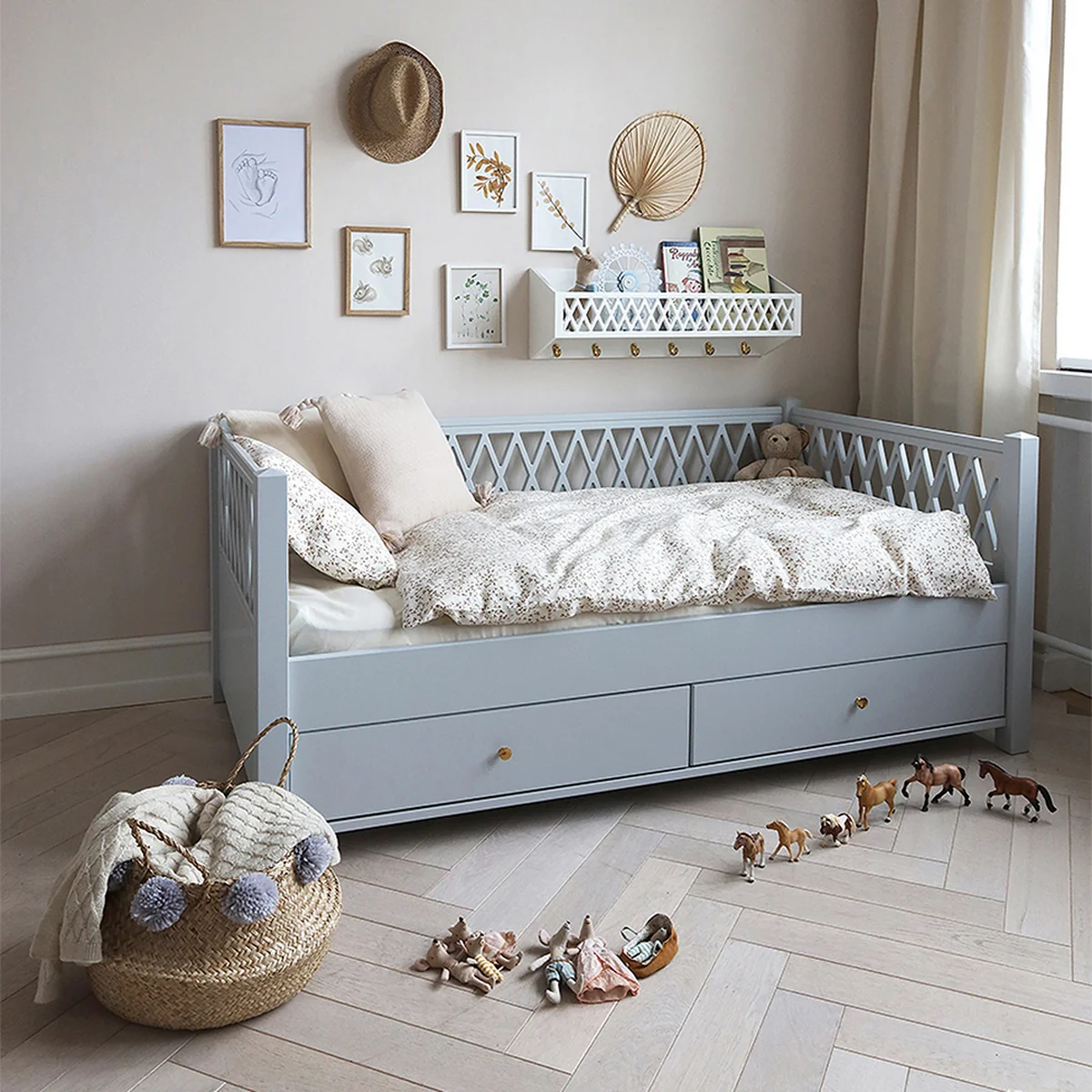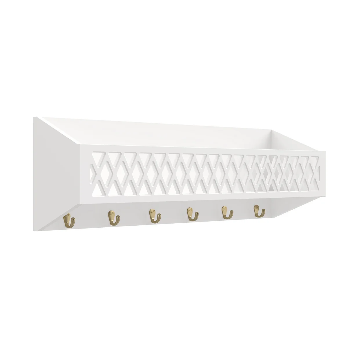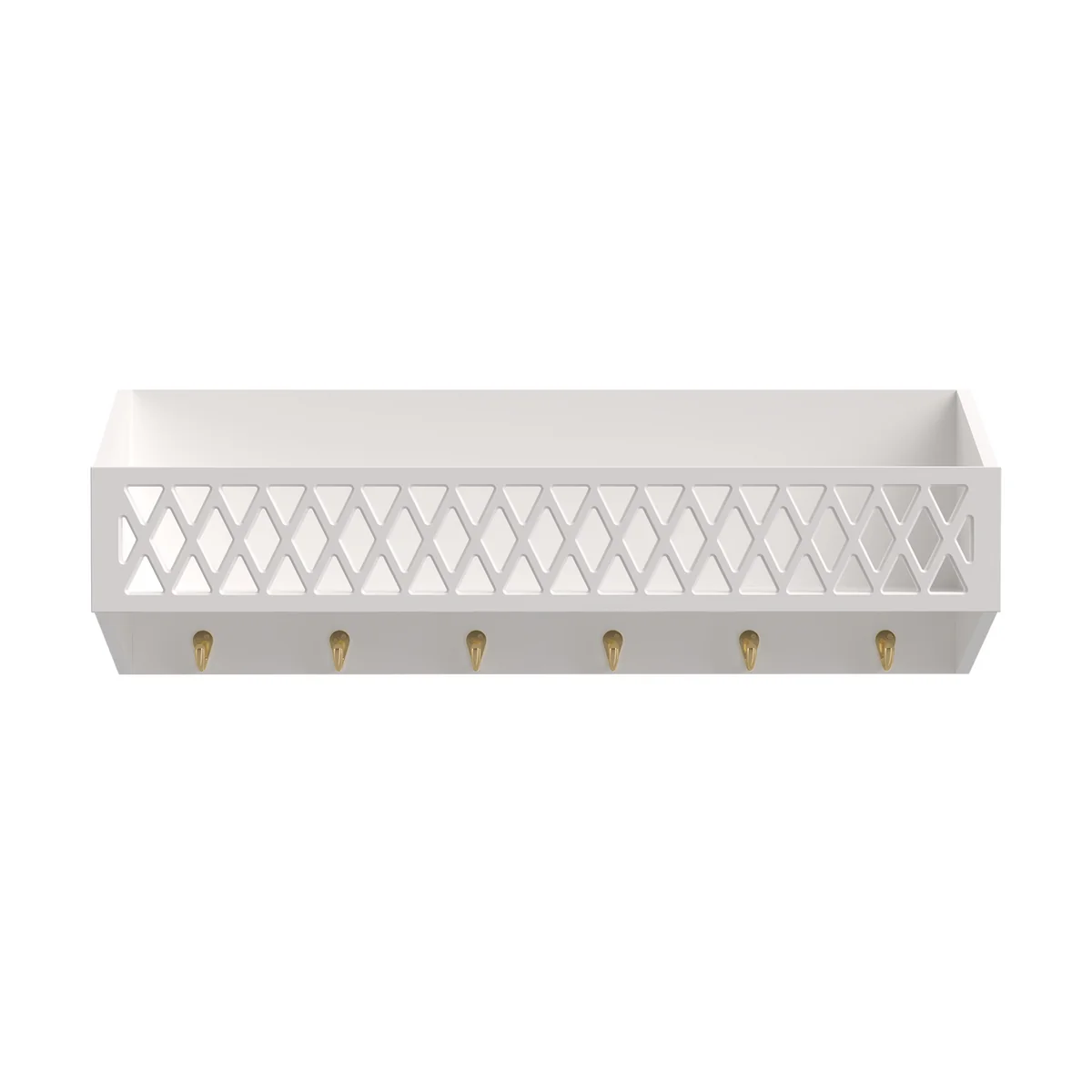 De Harlequin wandplank van Cam Cam Copenhagen vormt een elegante en praktische plank met haken. Hij kan zowel in de slaapkamer als in de kinderkamer of in de inkomhal worden gemonteerd. Hij biedt voldoende ruimte voor hoeden, handschoenen en sjaals, maar ook voor kleding, kostuums en maskers. Met zijn edele en charmante monochrome design past de wandplank perfect in elke interieurstijl.