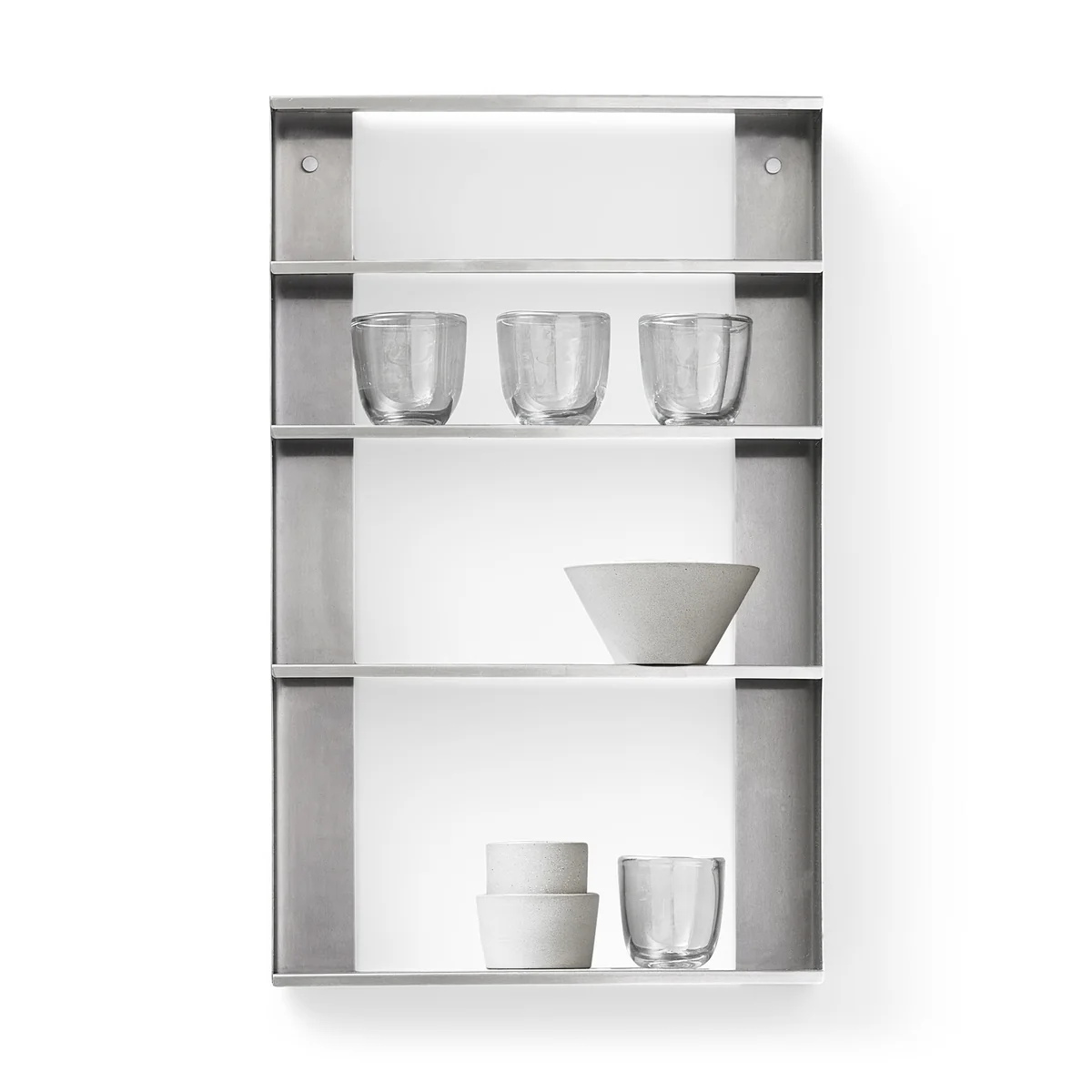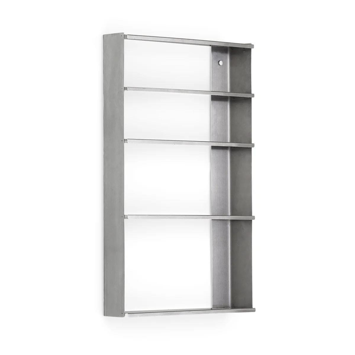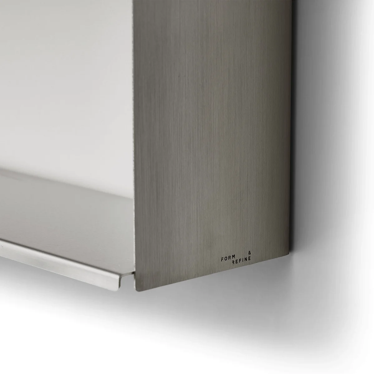 Elke plank heeft een subtiel afgeronde voorkant die de ingewikkelde details van de afzonderlijke onderdelen benadrukt en een elegante touch toevoegt aan de zichtbare stalen profielen. De geringe diepte van de plank is ideaal voor het uitstallen van waardevolle voorwerpen en het handig opbergen van alledaagse voorwerpen.