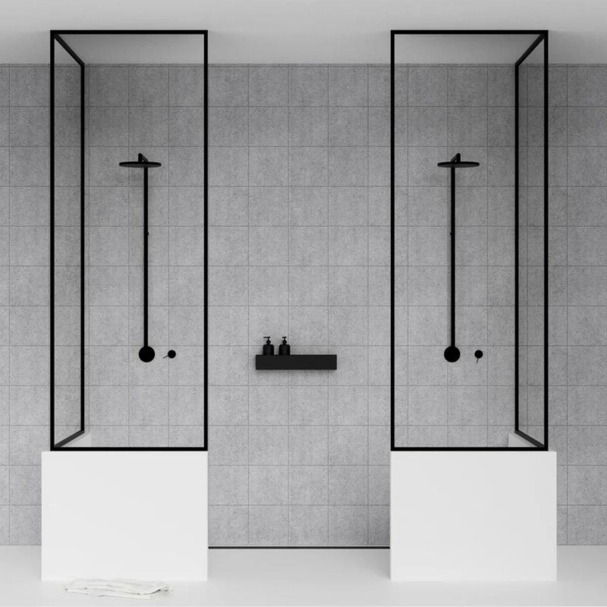 Verkrijgbaar in wit en zwart, maakt het wandrek deel uit van een serie badkamerproducten in het eenvoudige, tijdloze design van Nichba Design .