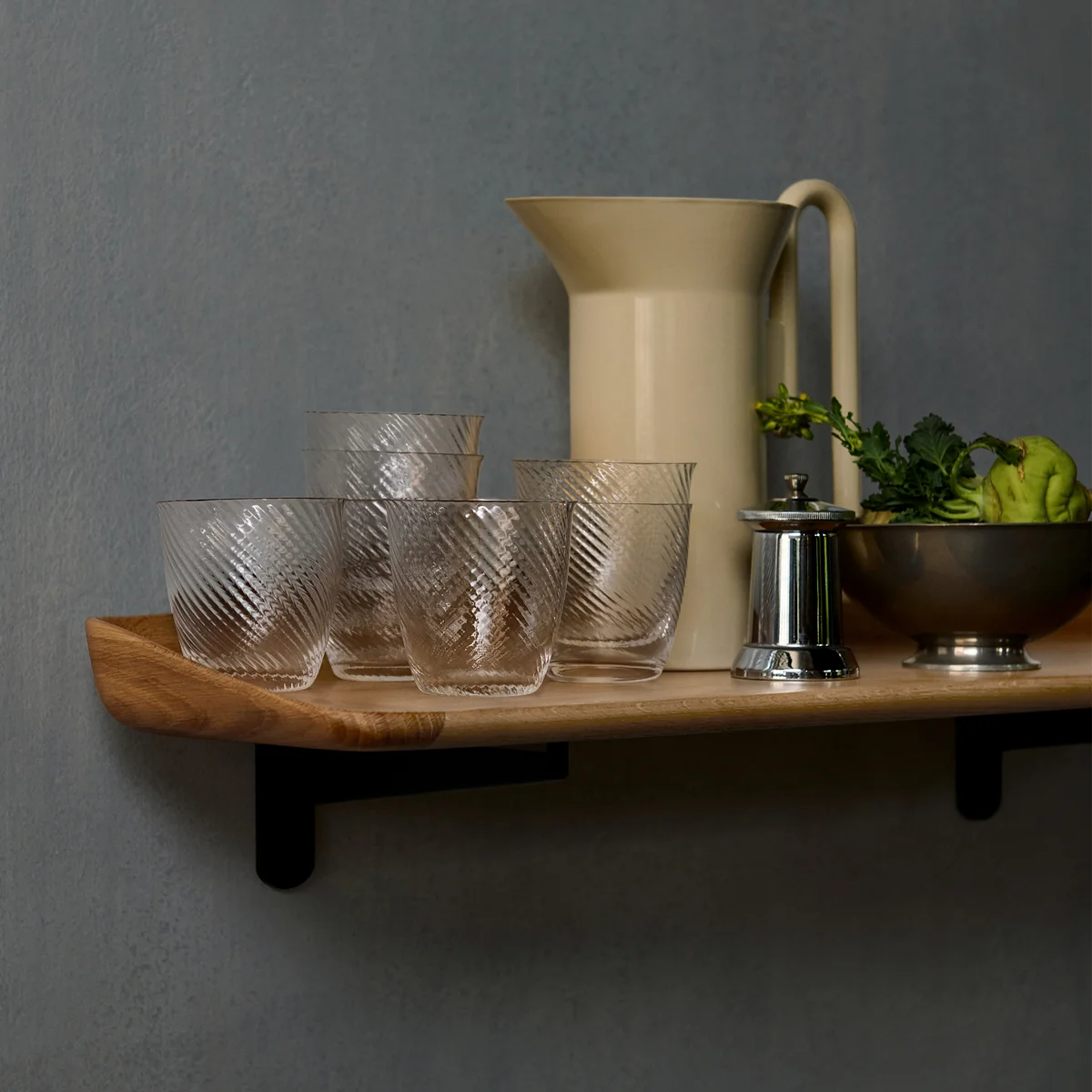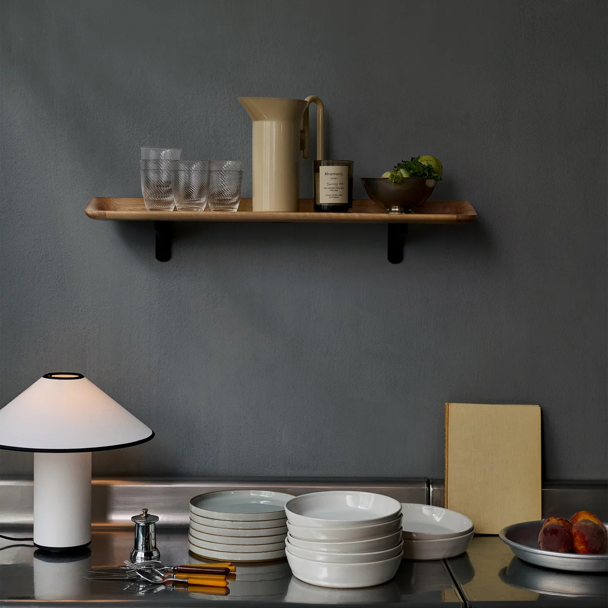 & De Guild wandplank van Hvidt Mølgaard voor & Tradition combineert meesterlijk vakmanschap met tijdloos design. Geïnspireerd door een origineel ontwerp uit 1952, maakt de plank indruk met zijn zacht gebogen vorm, die doet denken aan natuurlijke lijnen. Gemaakt van gelakt eiken of walnoot, brengt het warmte en elegantie in elke kamer.