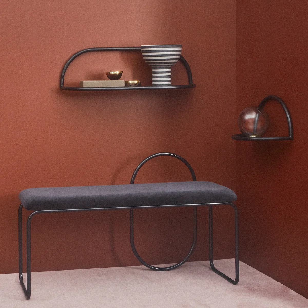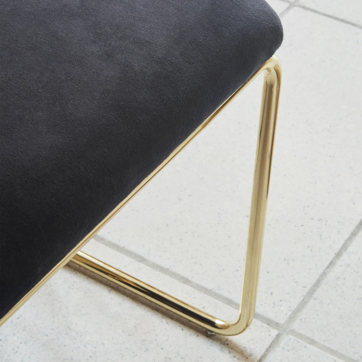 De gestoffeerde zitting van de bank is bekleed met katoenfluweel, wat zorgt voor een bijzonder elegante touch. Aan de andere kant is het frame gemaakt van ijzer en voegt een vleugje industriële charme toe. De combinatie van beide materialen zorgt voor een tijdloos meubelstuk dat op vele manieren gebruikt kan worden. In de gang dient de Angui bank bijvoorbeeld als plek om aan te komen, in de woonkamer kan hij worden geïntegreerd in een bestaande zitgroep en in de slaapkamer fungeert hij als alternatief voor de klassieke stomme bediende.