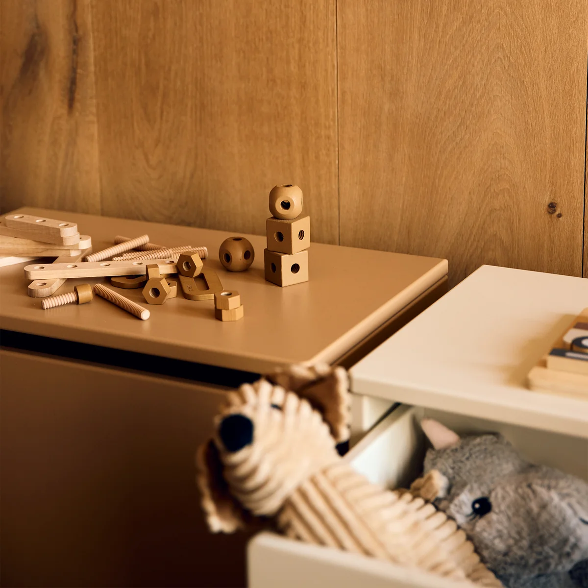 De Flexa Dots 3-in-1 bank is een veelzijdig meubelstuk dat met zijn flexibele functionaliteit en stijlvolle ontwerp zowel praktische als esthetische voordelen biedt voor de kinderkamer. Deze goed doordachte bank combineert zit-, opberg- en speelruimte in één en past zich perfect aan de behoeften van het kind aan.