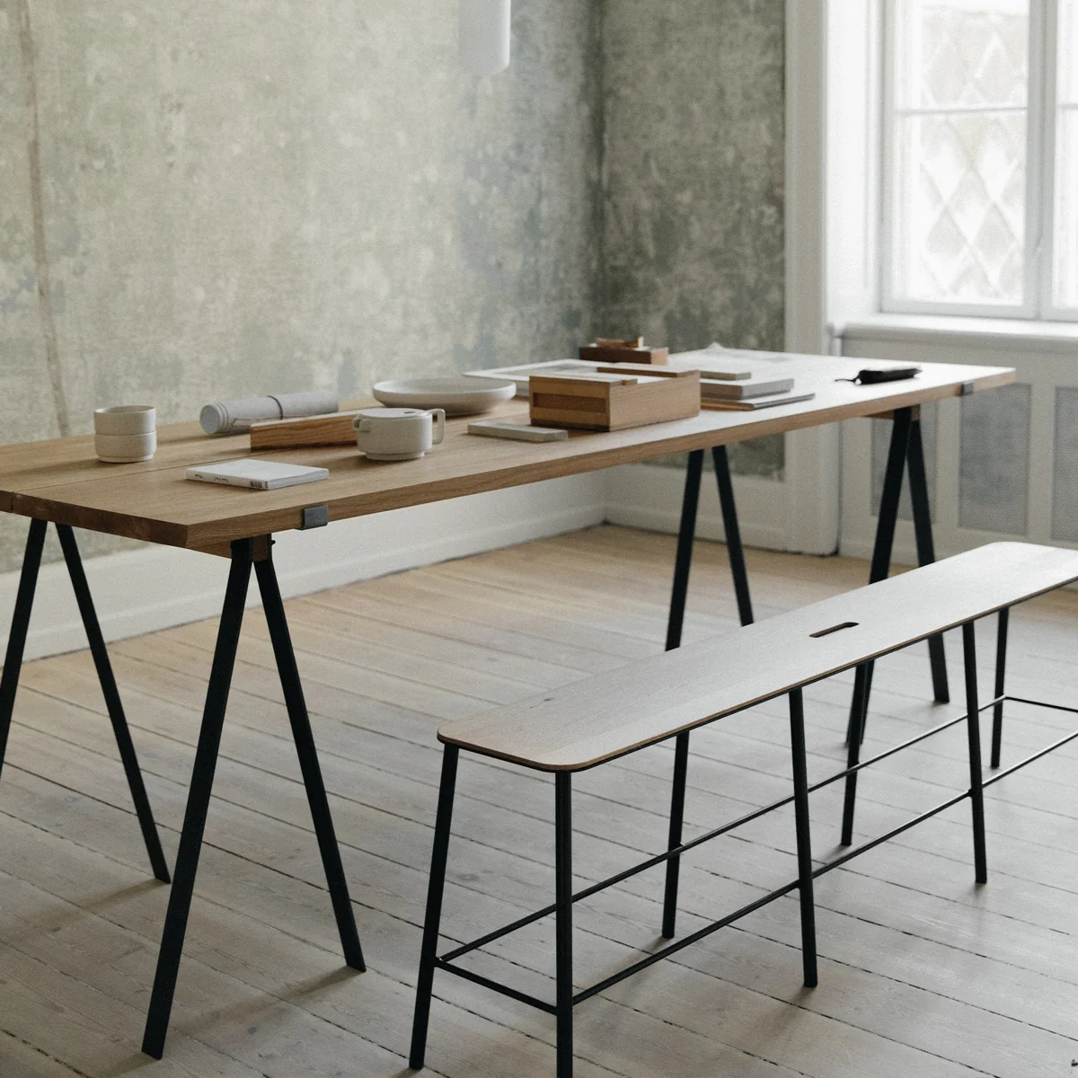 De Adam bank van Frama vertegenwoordigt de klassieke esthetiek van industrieel ontwerp en belichaamt een eenvoudige en ingetogen look. De look is een eerbetoon aan de solide materialen en hoge functionaliteit. Het mooie, robuuste ontwerp is zeer geschikt om te combineren met een eettafel en te plaatsen in een hal of grote gang. De Adam bank is een tijdloos stuk voor dagelijks gebruik. Door de eigenschappen van massief eikenhout kan de zitting in de loop der tijd variëren en veranderen. Zo verandert de bank in een individueel meubelstuk.