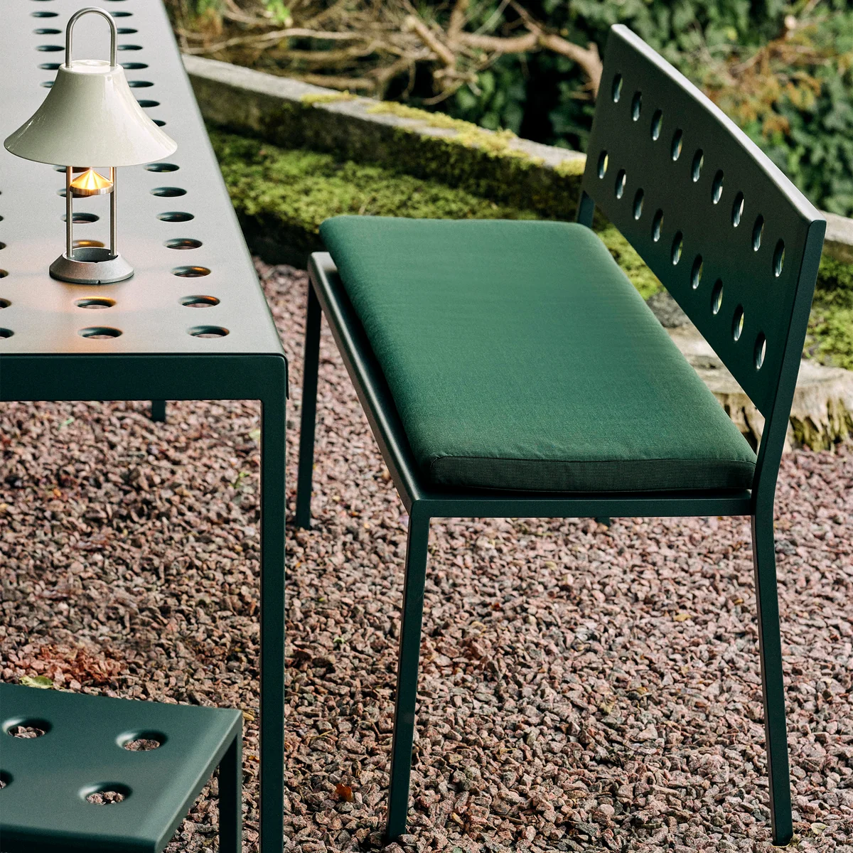 De Balcony Lounge Bench van het ontwerpersduo Ronan en Erwan Bouroullec voor HAY is een uiterst elegante en comfortabele zitmogelijkheid voor de buitenruimte. Het hoekige ontwerp krijgt een nonchalante uitstraling door de slanke poten. De gaten in de zitting en de rugleuning versterken de constructie van de bank, maar zorgen tegelijkertijd voor een geweldige visuele blikvanger. Balcony Lounge is gemaakt van gepoedercoat staal. De primer coating zorgt ervoor dat de bank optimaal beschermd is tegen weer en wind. Verkrijgbaar in verschillende kleuren.