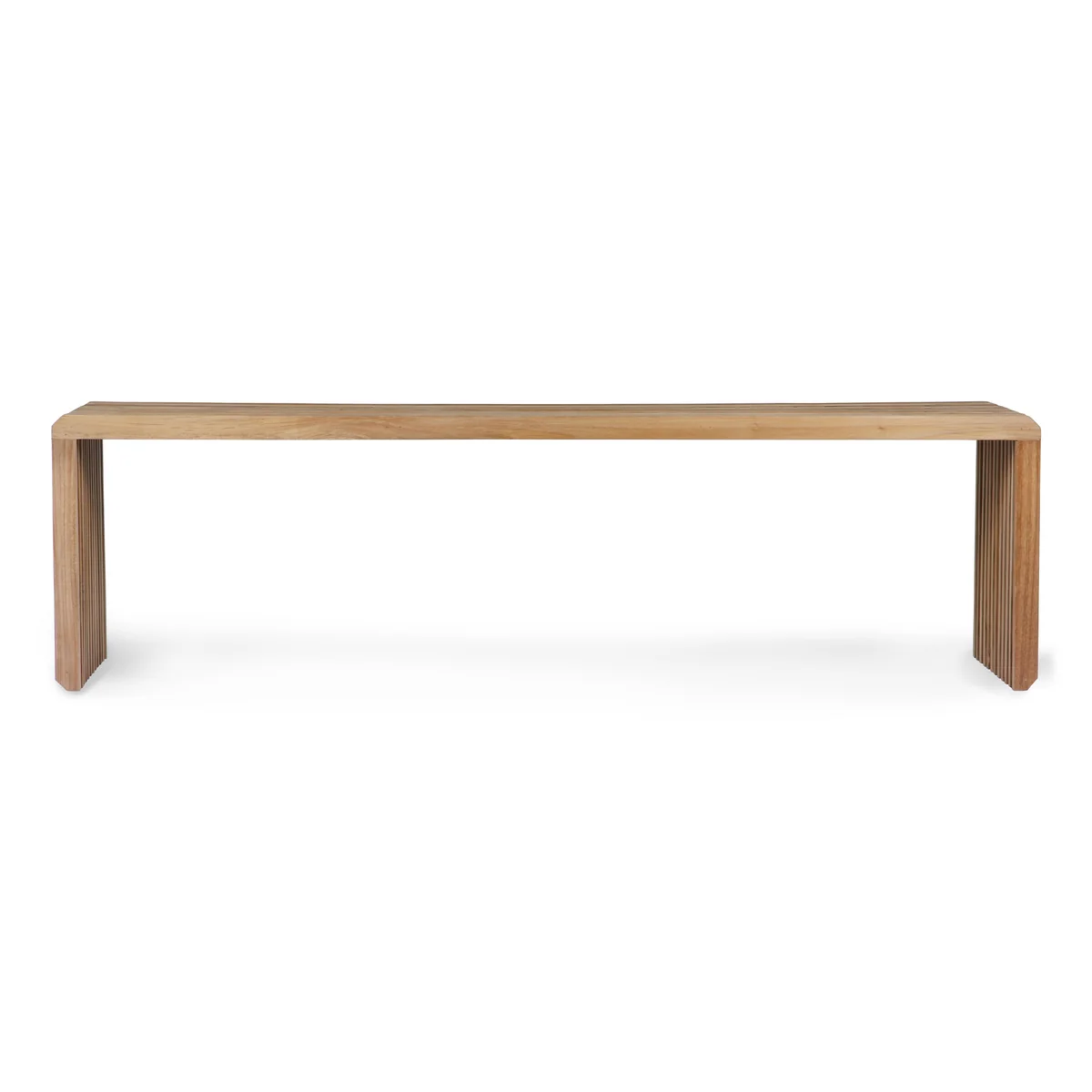 De Slatted bank van HKliving is een eenvoudige, maar ingenieuze houten bank die met zijn minimalistische vormentaal echte accenten legt. Of het nu in de woonkamer is, aan de eettafel, de keuken of in de slaapkamer: deze bank is stijlvol en gezellig. De bank ontleent zijn naam aan zijn karakteristieke vormgeving: individuele houten latten worden in een robuuste en stabiele bank in lattenbodemoptiek ingebouwd.