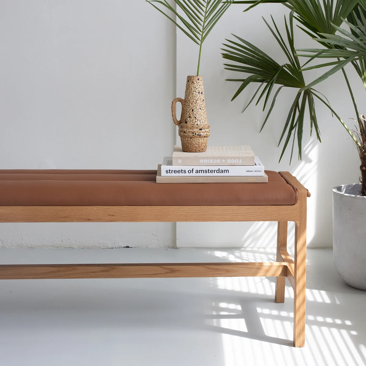 De Leef Bench wordt gekenmerkt door zijn minimalistische esthetiek. De bank biedt een zachte zit en ergonomische ondersteuning en is voorzien van royaal gevulde kussens. De Leef bench is verkrijgbaar in verschillende versies.