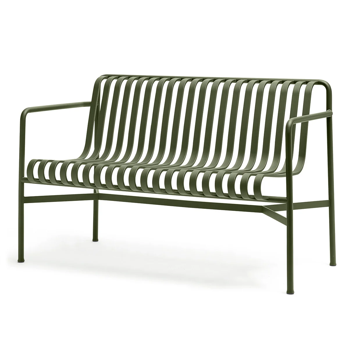 De Palissade eetbank van HAY is een tuinbank die ideaal is voor gezellige barbecue-avonden in de tuin. Met zijn rugleuning en armleuningen biedt de bank een hoge mate van comfort. Door de ergonomische vorm van de bank - zelfs zonder bekleding - kun je comfortabel achterover leunen.