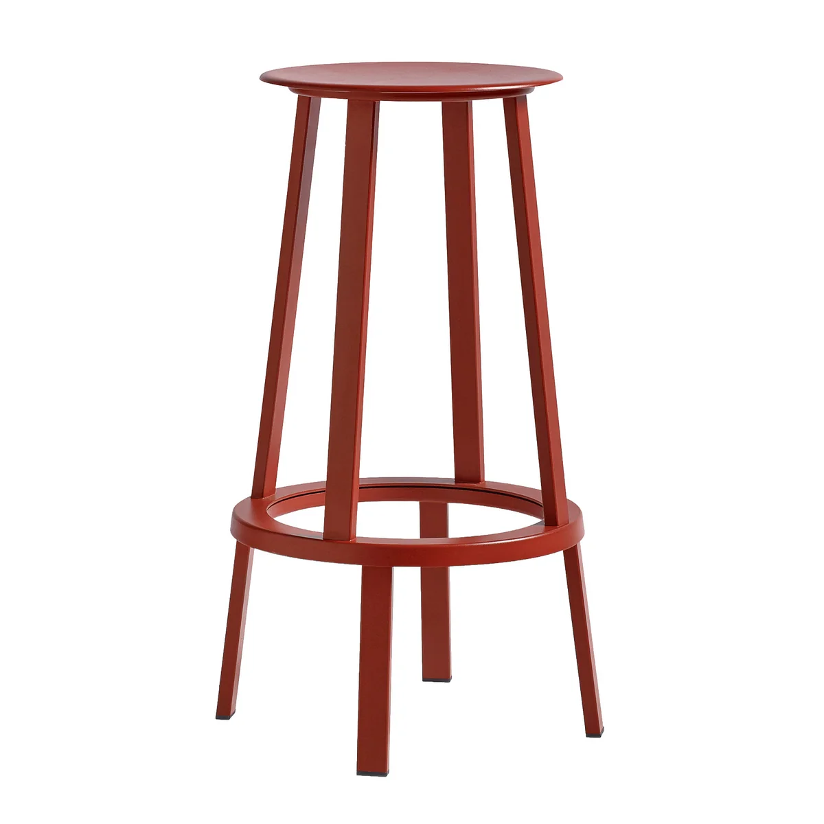 HAY vervaardigt de Revolver barkruk van gepoedercoat staal. Dankzij het materiaal is de kruk, die verkrijgbaar is in twee maten, robuust, duurzaam en gemakkelijk schoon te maken.