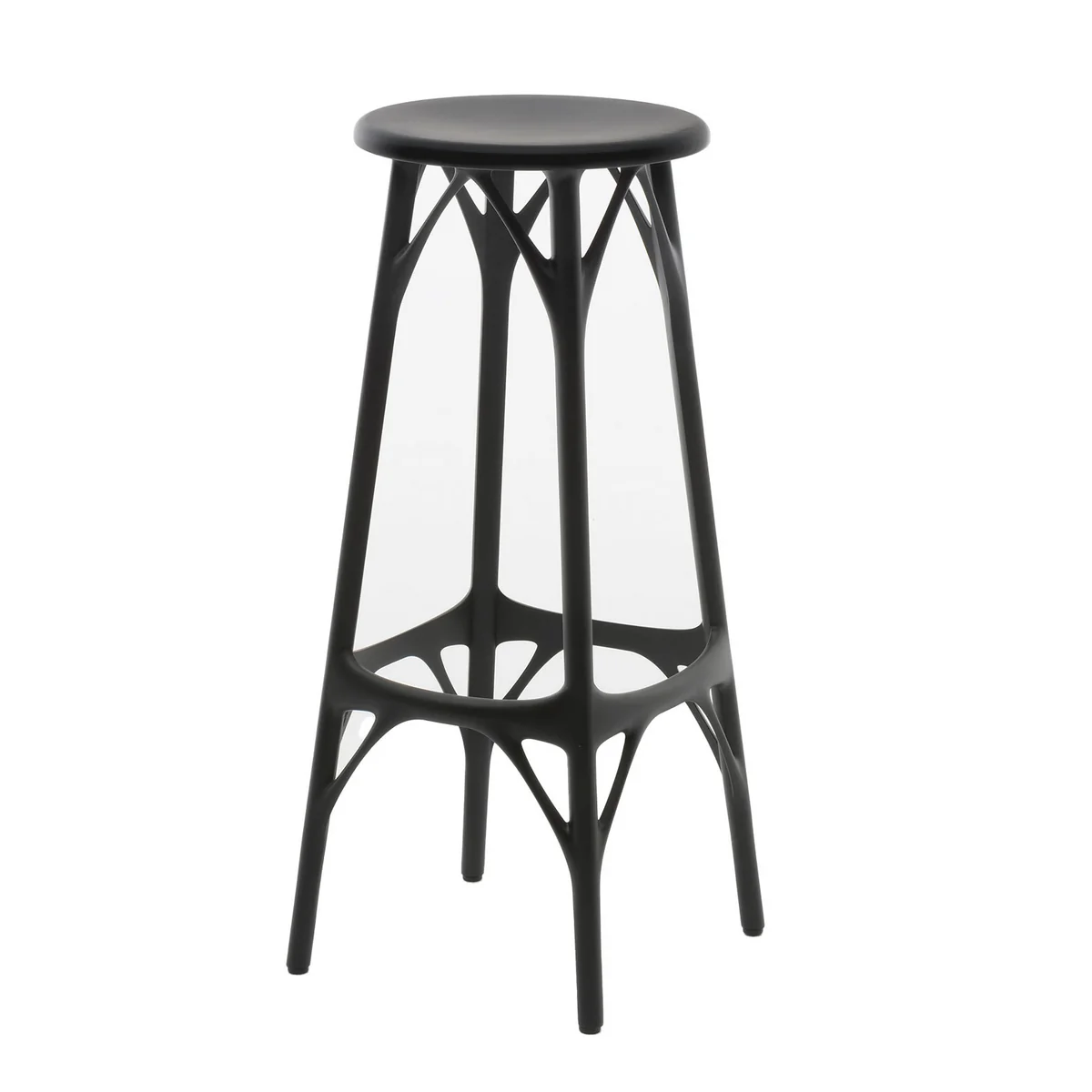 De A.I. Light barkruk van Kartell is een prachtig pronkstuk van moderne duurzaamheid. De barkruk is gemaakt van gerecycled thermoplastisch technopolymeer met minerale vulstof en soft-touch behandeling. Naast het gebruik van milieuvriendelijke materialen is ook het productieproces duurzaam. Zo kunnen verschillende modellen worden geproduceerd met één persmatrijs.