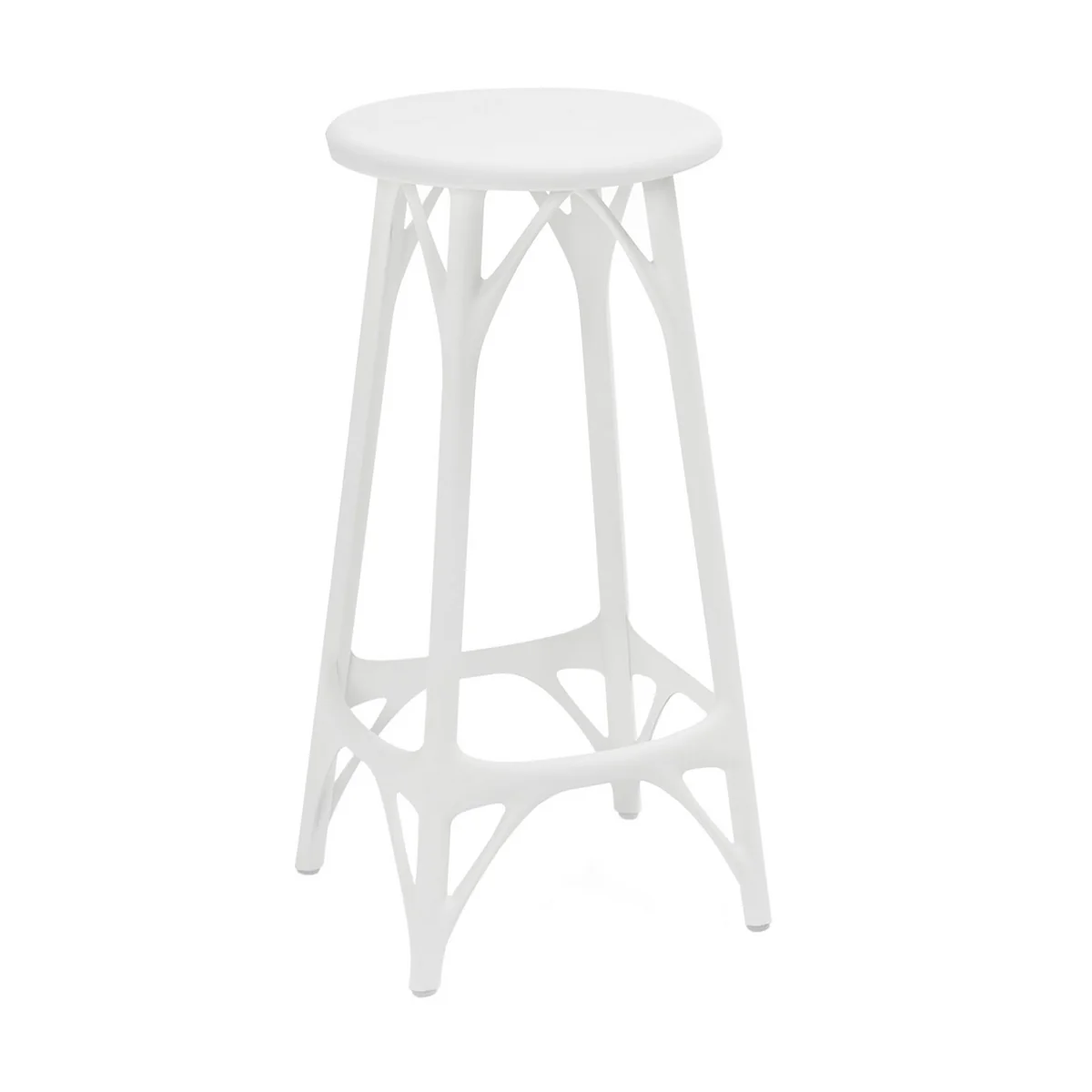 De A.I. Light barkruk van Kartell is een prachtig pronkstuk van moderne duurzaamheid. De barkruk is gemaakt van gerecycled thermoplastisch technopolymeer met minerale vulstof en soft-touch behandeling. Naast het gebruik van milieuvriendelijke materialen is ook het productieproces duurzaam. Zo kunnen verschillende modellen worden geproduceerd met één persmatrijs.