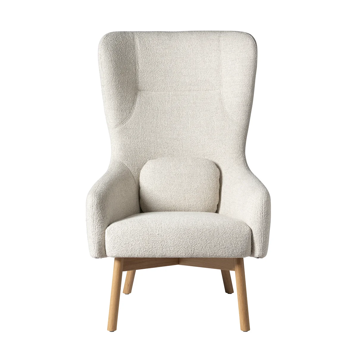 & De Gesja wing chair, ontworpen door Foersom Hjort Lorentzen in 2016, is een moderne herinterpretatie van de klassieke wing chair. Met zijn volledig gestoffeerde romp biedt hij niet alleen een comfortabele zit, maar creëert hij ook een uitnodigende sfeer om je terug te trekken en te ontspannen. De fauteuil omarmt de gebruiker letterlijk en nodigt uit tot stijlvolle momenten van contemplatie. De combinatie van hoogwaardige bekleding en massief eikenhout harmonieert perfect en geeft het meubelstuk een tijdloze elegantie.