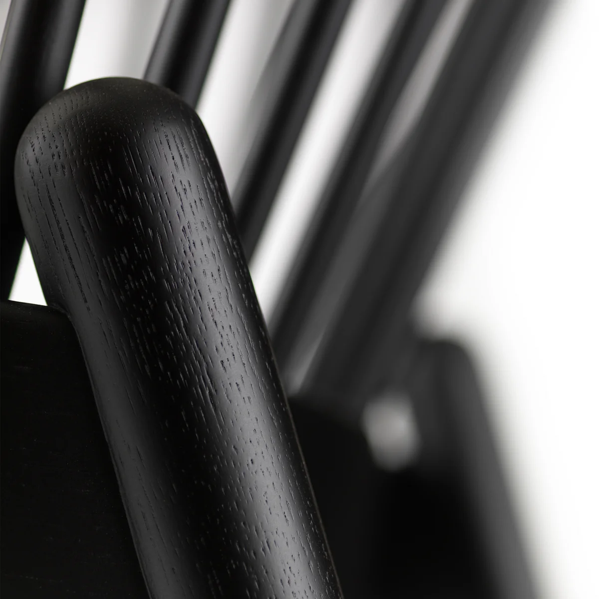 De Jørna fauteuil, ontworpen door de beroemde architect Poul Volther in 1952, heeft een speciale plaats in het Deense meubeldesign. Volther creëerde deze fauteuil als eerbetoon aan zijn vrouw Jørna, die graag ontspande tijdens het breien - vandaar de naam. De fauteuil biedt niet alleen ruimte voor lange breinaalden, maar is ook ideaal voor moderne apparaten zoals laptops of iPads. Met zijn comfortabele en functionele ontwerp nodigt hij je uit om te ontspannen en nieuwe energie op te doen, en belichaamt hij de essentie van de Deense meubelcultuur.