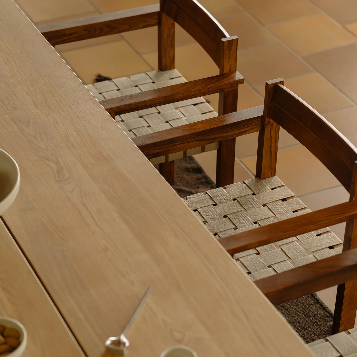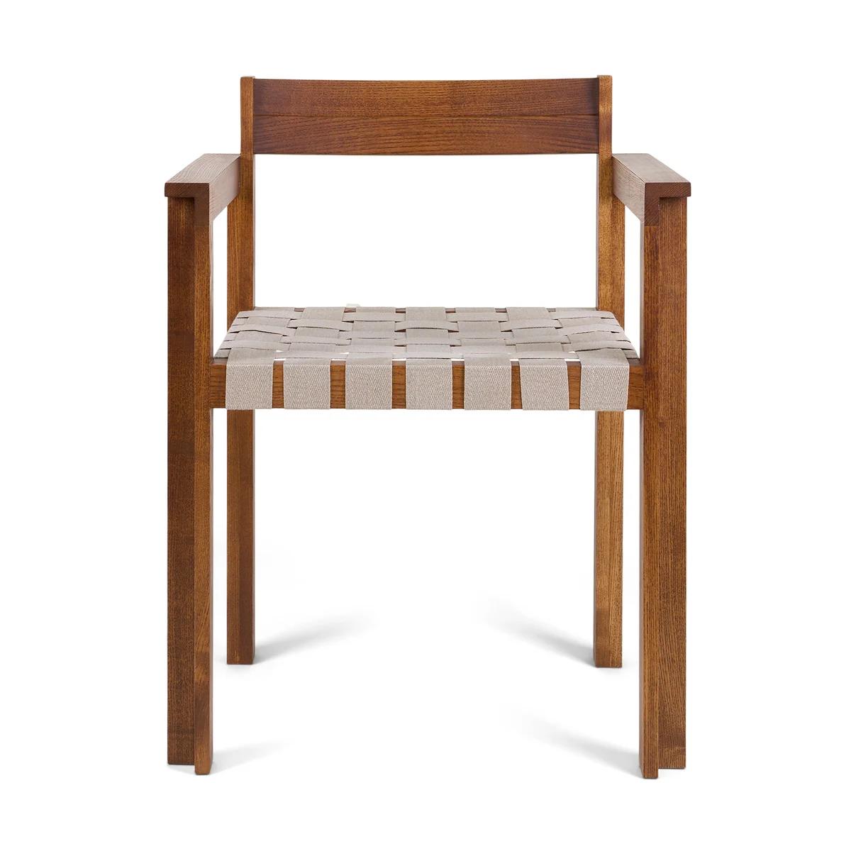 De Symmetry fauteuil, ontworpen door Studio 0405, combineert traditioneel vakmanschap met modern minimalisme. Gemaakt van gebeitst essenhout in een warme honingkleur en met een geweven zitting, straalt de stoel natuurlijke elegantie en lichtheid uit. De heldere, rechte vorm biedt stabiel zitcomfort - of het nu aan de eettafel, in de woonkamer of op kantoor is. De karakteristieke bandbekleding zorgt voor een aangename zitervaring en doet denken aan de klassieke Scandinavische meubeltraditie. Na verloop van tijd krijgt het hout een unieke patina die de stoel nog authentieker maakt.