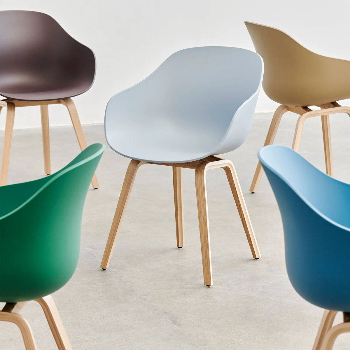AAC - Over een stoel van HAY is een stoelenserie met opvallende eenvoud in ontwerp. Ontwerper Hee Welling heeft met deze veelzijdige collectie een nieuw niveau bereikt in de combinatie van vorm, functie, comfort, detail en esthetiek. Als variant is de populaire HAY stoel verkrijgbaar in een gekleurde uitvoering waarbij het onderstel en de zitschaal elkaar in kleur aanvullen.