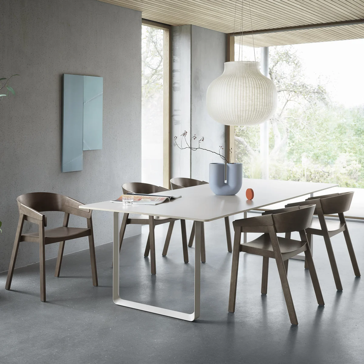 De Cover Armchair van Muuto is een testament van eerlijk vakmanschap en Scandinavische kwaliteitsmaterialen. Met geraffineerde details, zoals de met hout omwikkelde armleuningen, biedt hij een elegante kijk op de tijdloze houten stoel. Ontwerper Thomas Bentzen verkent de mogelijkheden van houtfineer met de Cover stoel: een gebogen rug gekoppeld aan diep comfort, een moderne expressie en een massief houten onderstel. In overeenstemming met het naadloze uiterlijk van de stoel, zijn er geen zichtbare schroeven.