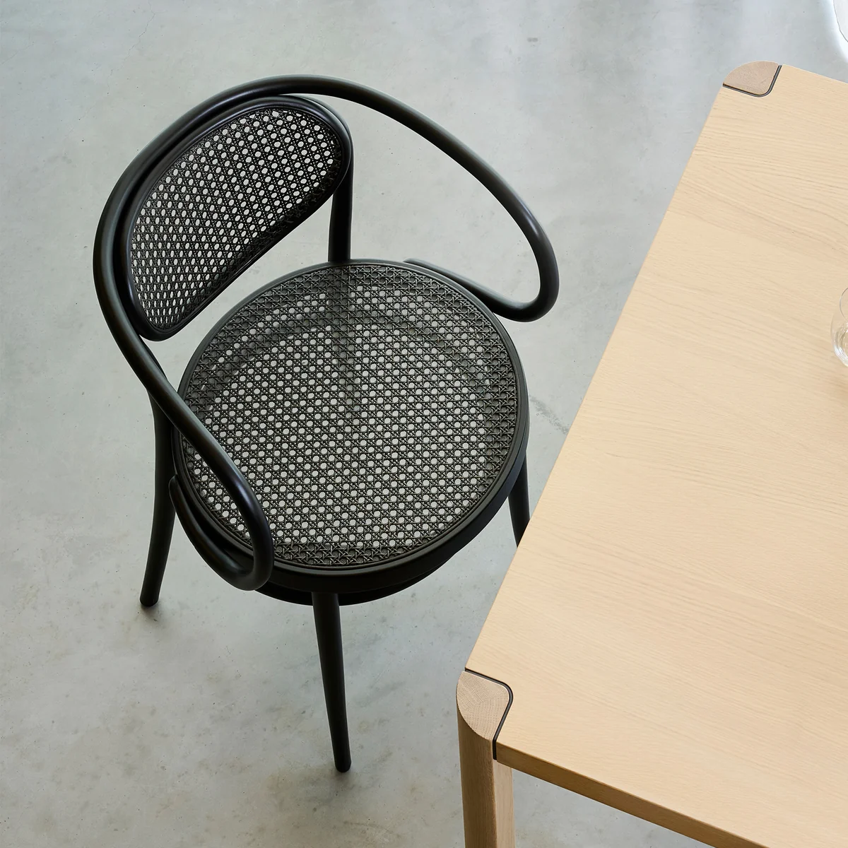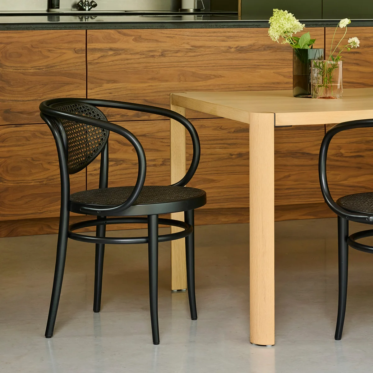 De 210 R fauteuil, ontworpen rond 1900 door de gebroeders Thonet , wordt beschouwd als een meesterwerk van vakmanschap en designtaal. De rugleuning en armleuningen zijn gebogen uit één stuk massief beukenhout - een symbool van technische precisie en tijdloze esthetiek. Met zijn harmonieuze lijnen heeft de stoel een bijna sculpturale uitstraling en combineert functionaliteit met elegante lichtheid.