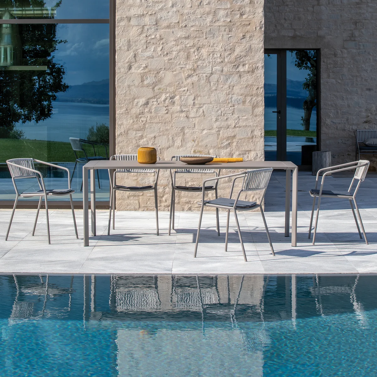 De Slot fauteuil van Vermobil combineert heldere geometrieën, zachte rondingen en gegalvaniseerd staal tot een moderne buitenstoel met een sterke uitstraling. De mix van massieve oppervlakken en doorschijnende elementen creëert een spannend visueel contrast dat tegelijkertijd lichtheid en stabiliteit uitstraalt. Dankzij het gepoedercoate oppervlak is de Slot fauteuil weerbestendig en gemakkelijk schoon te maken - ideaal voor gebruik in de tuin, op het terras of in openbare buitenruimtes. De harmonieus afgeronde hoeken en het eigentijdse ontwerp geven de fauteuil een jeugdige elegantie die zowel individueel als in combinatie met andere meubels uit de Slot-serie indruk maakt.