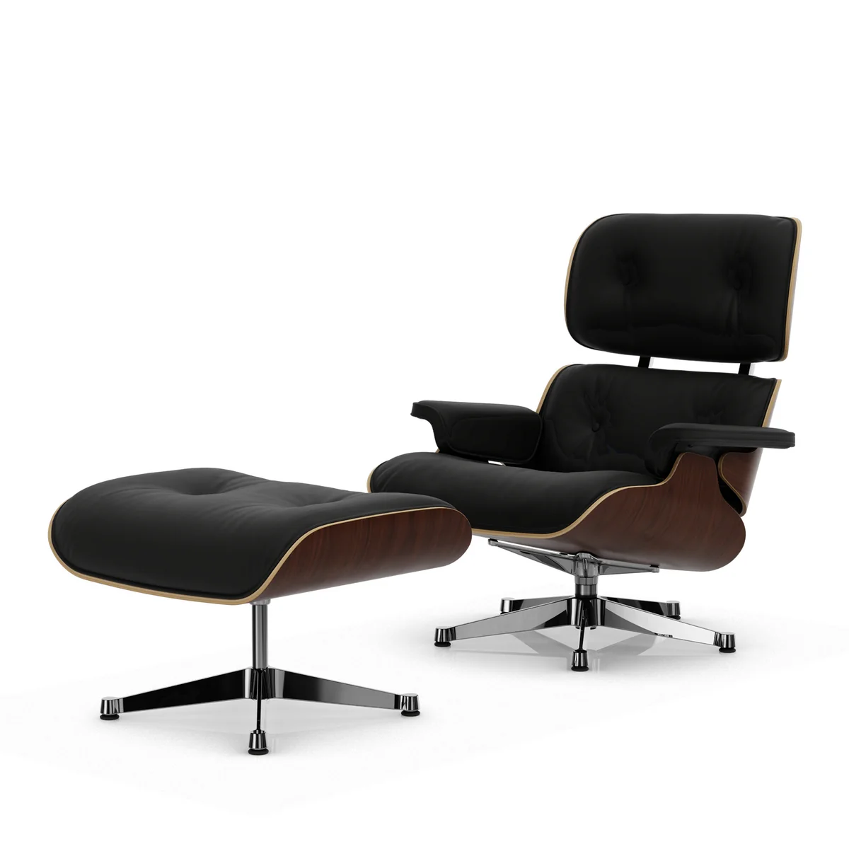 Het onderstel van de Eames Lounge Chair is verkrijgbaar in een verchroomde of gepolijste versie. Verschillende combinatiemogelijkheden drukken een zeer individueel karakter uit.