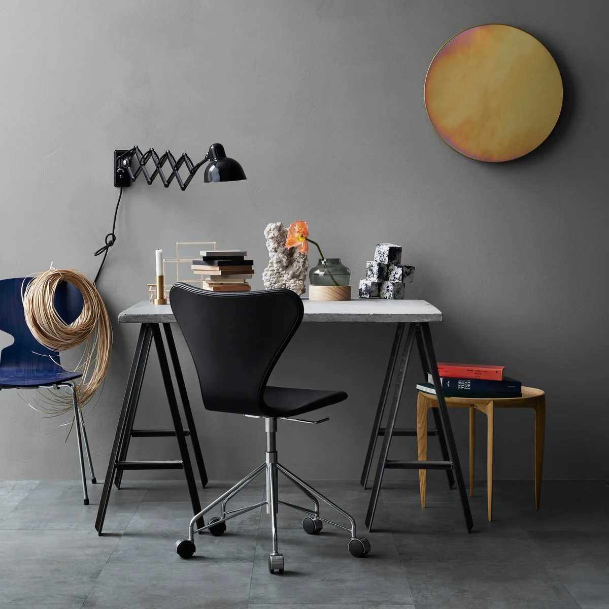 De Series 7 bureaustoel van Fritz Hansen maakt indruk met zijn iconische zitschaal en onderstel met vijf sterren en wielen. Dit verandert de tijdloze klassieker in een praktische bureaustoel en biedt maximale flexibiliteit op het werk.