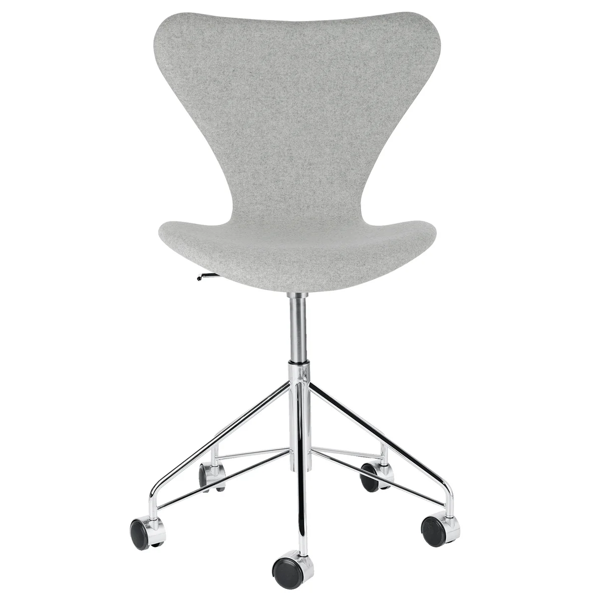 De Series 7 bureaustoel van Fritz Hansen maakt indruk met zijn iconische zitschaal en onderstel met vijf sterren en wielen. Dit verandert de tijdloze klassieker in een praktische bureaustoel en biedt maximale flexibiliteit op het werk.