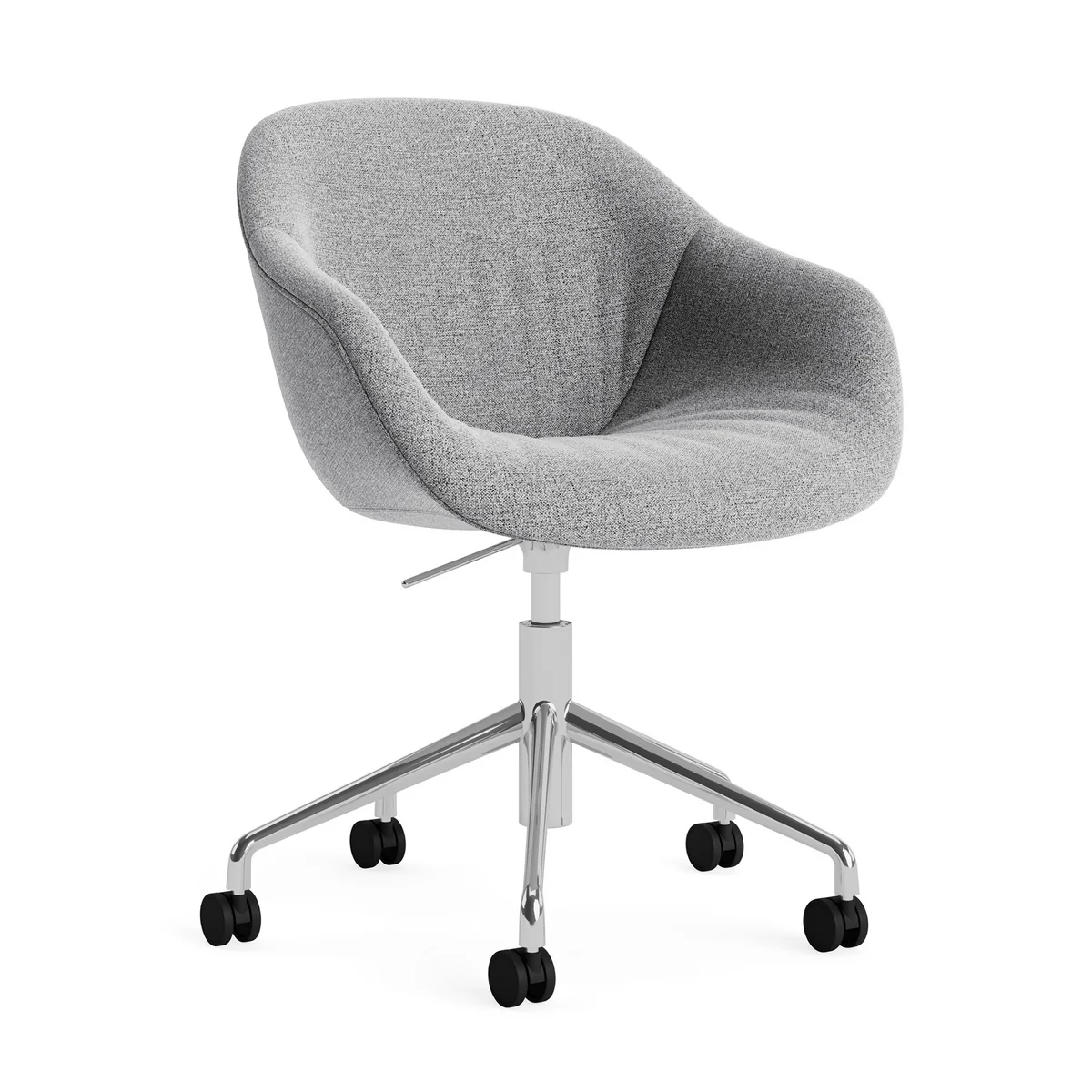 De About A Chair AAC 253 draaistoel heeft armleuningen en een aluminium vierpootsframe. De zitschaal is gemaakt van effen kunststof. Het onderstel en de bekleding zijn verkrijgbaar in verschillende versies.