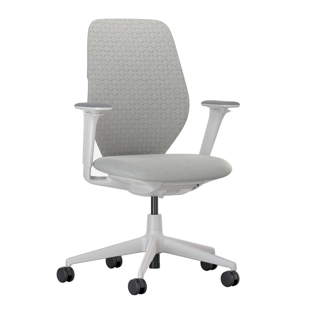 De bureaustoel is volledig verstelbaar. De zithoogte, de hoek van de rugleuning en de armleuningen kunnen worden aangepast aan individuele behoeften.