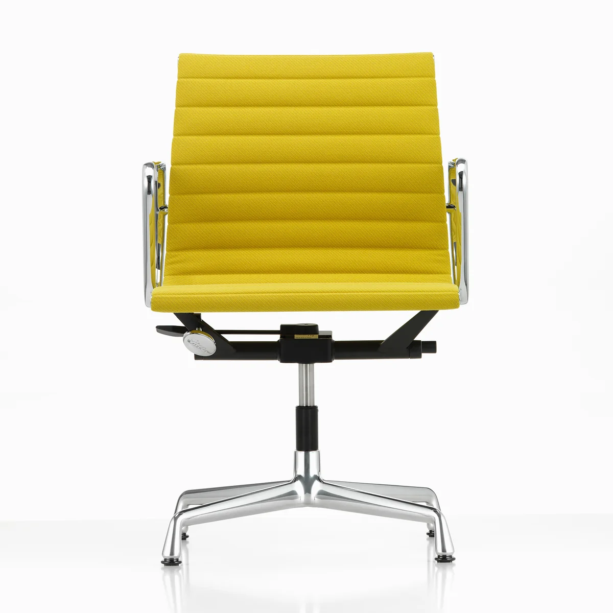 De EA 131 bureaustoel met armleuningen van Vitra is een van de opmerkelijke meubelontwerpen van de 20. eeuw. Vitra breidt zijn families aluminium stoelen en soft pad stoelen nu uit met modellen die bijzonder geschikt zijn voor het thuiskantoor: De EA 131 Aluminium Chair, zijn iets smallere tegenhanger, de EA 132 , en de Soft Pad Chair EA 231 zijn uitgerust met een verstelbaar kantelmechanisme en een rechte zithoek die speciaal is afgestemd op de vereisten van het bureau. Ontworpen zonder wielen, stralen ze een sobere en stille elegantie uit.