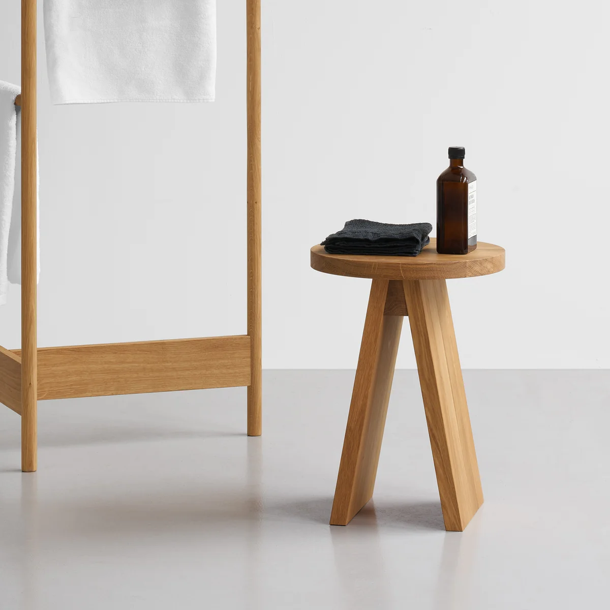 De EK01 STOOL is handgemaakt van massief Europees eikenhout in een gespecialiseerde werkplaats in Duitsland. Hij is verkrijgbaar in twee hoogtes en wordt volledig gemonteerd geleverd. Of het nu in de badkamer, woonkamer of openbare ruimte is - deze kruk combineert functionaliteit en elegantie.