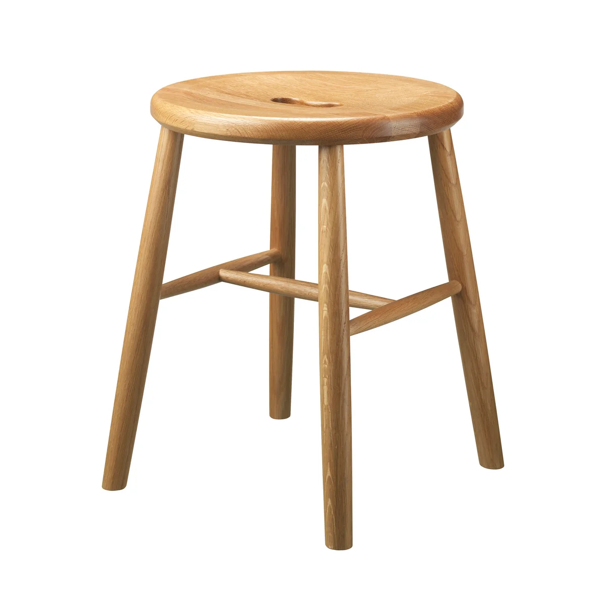De designkruk van FDB Møbler is verkrijgbaar in beuken- en eikenhout in verschillende kleuren.