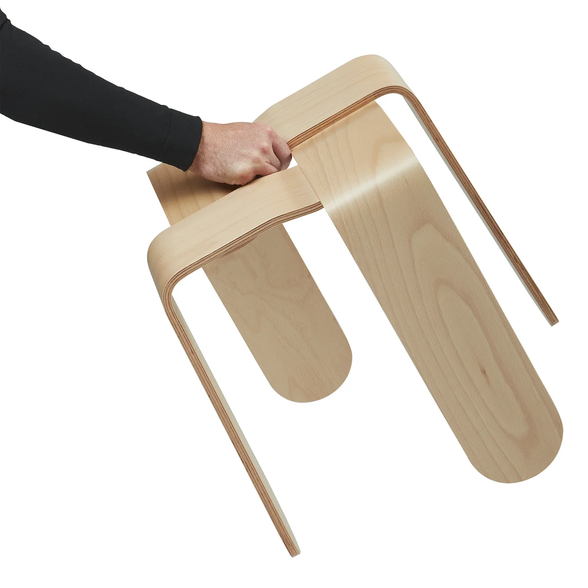 De kruk is gemaakt van beukenfineer en is verkrijgbaar in verschillende kleuren.