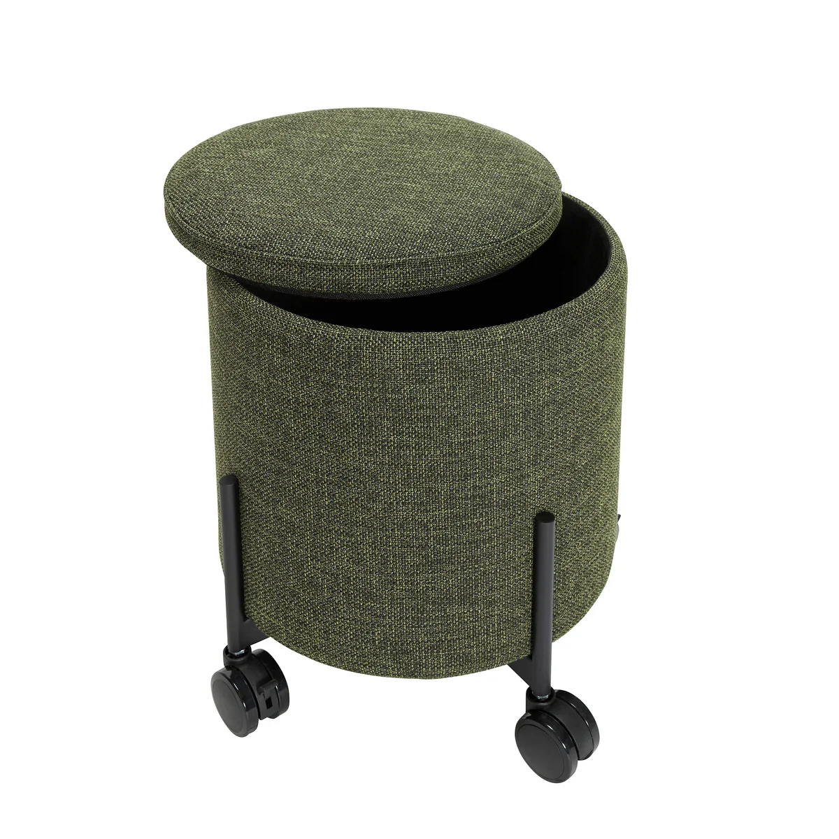 Gestoffeerde poef met wieltjes en opbergfunctie