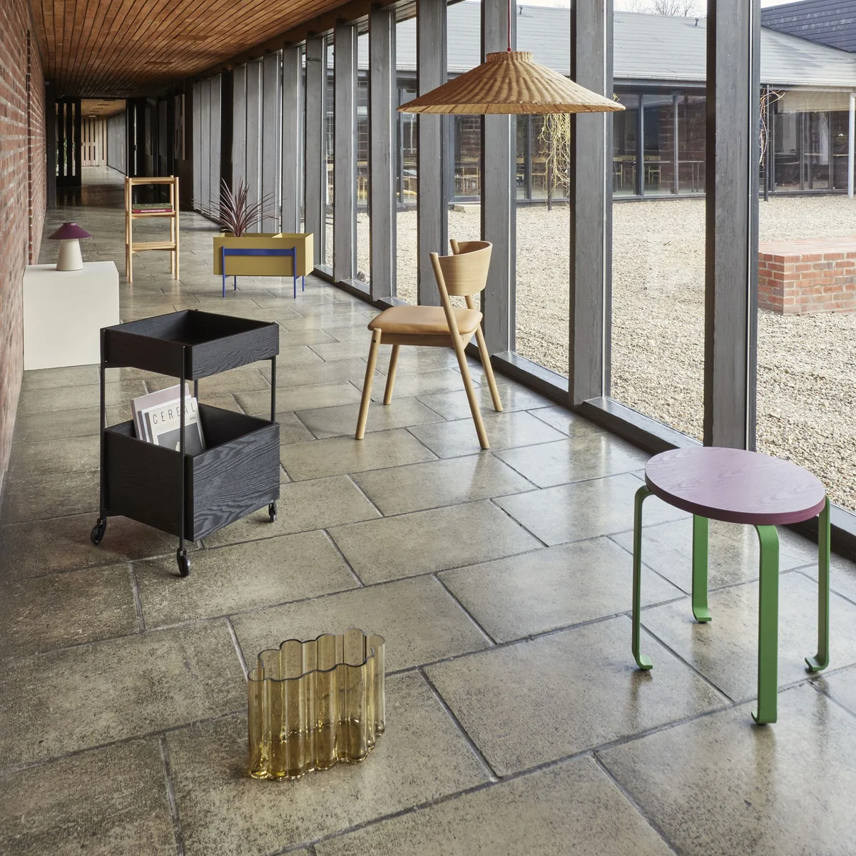 De Smile De kruk van het Deense bedrijf Hübsch Interior is een echte blikvanger dankzij zijn moderne design, zonder overladen of opdringerig te zijn. De stapelbare kruk is verkrijgbaar in de afmetingen Ø 46 x H 46,5 cm. De zitting is gemaakt van FSC®-gecertificeerd essenhout, de poten zijn van metaal. Smile is in de winkel in verschillende kleurencombinaties verkrijgbaar en kan desgewenst heerlijk als extra zitmogelijkheid worden gebruikt.