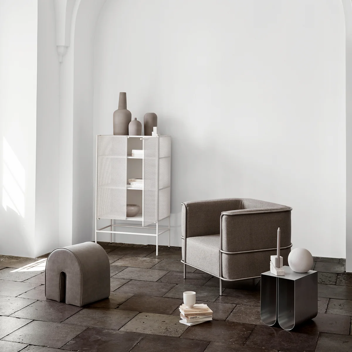 De Curved Pouf van Kristina Dam bekoort door zijn ongewone gebogen vorm. Hij is geschikt als extra zitplaats in de woon- of slaapkamer. Ongeacht waar het geplaatst is, de Curved Pouf is zeer decoratief door zijn geometrische uiterlijk. Door de productie van zwart anilineleer ziet de poef er ook nog eens extra elegant uit en tovert hij een duurzame zit tevoorschijn.