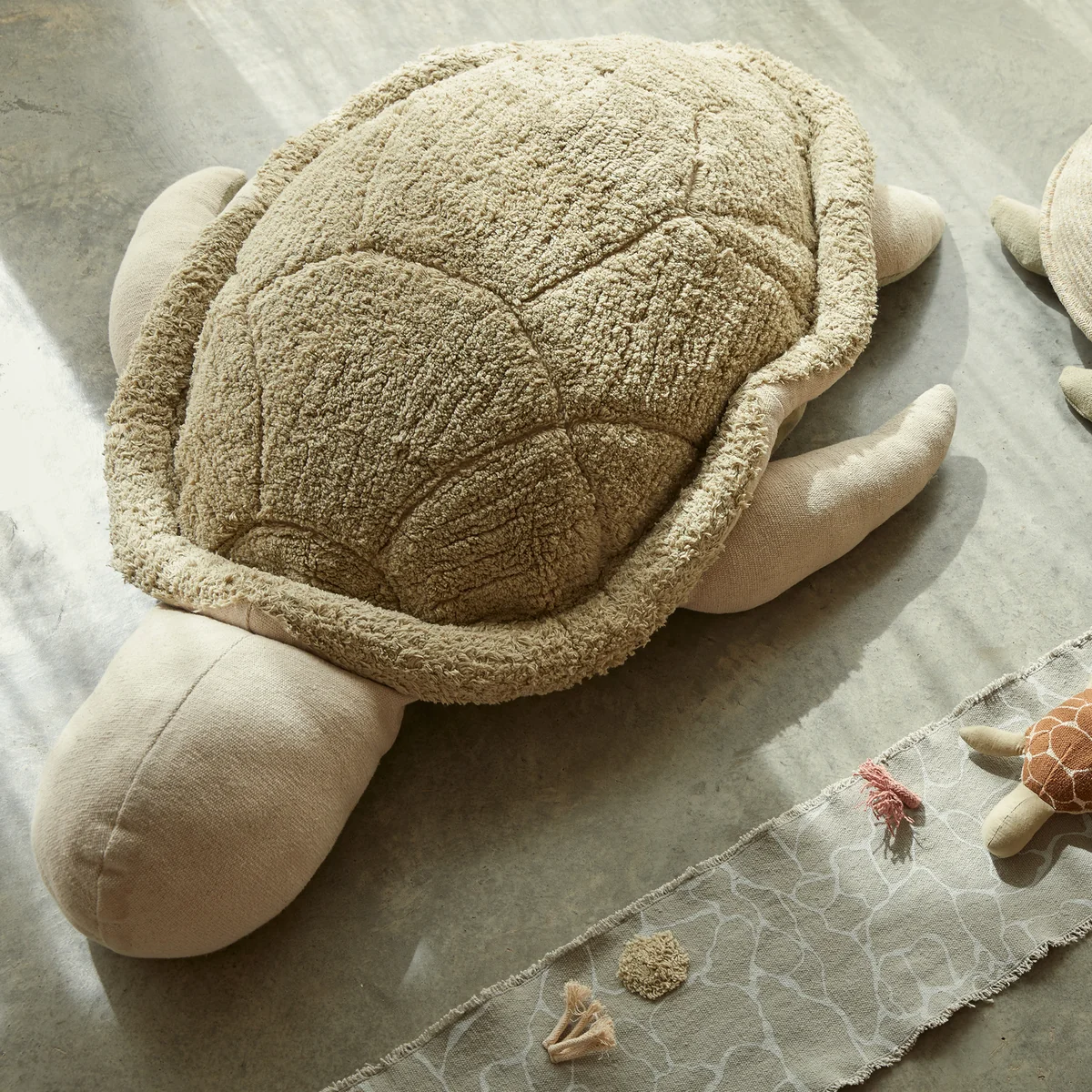 De Sea Turtle poef van Lorena Canals is gemaakt van zacht getuft katoen en is het perfecte zitje voor kleine pauzes. De schildpad heeft ledematen van naturelkleurig canvas. De hoes van de poef kan indien nodig worden gewassen, waardoor het een allrounder en must-have in de kinderkamer is. Visueel past de poef in elk interieur en biedt veelzijdige speelmogelijkheden.