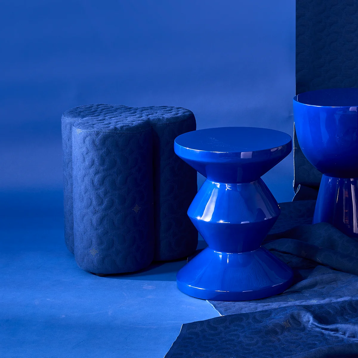 Klaverlook kruk met bouclé hoes
