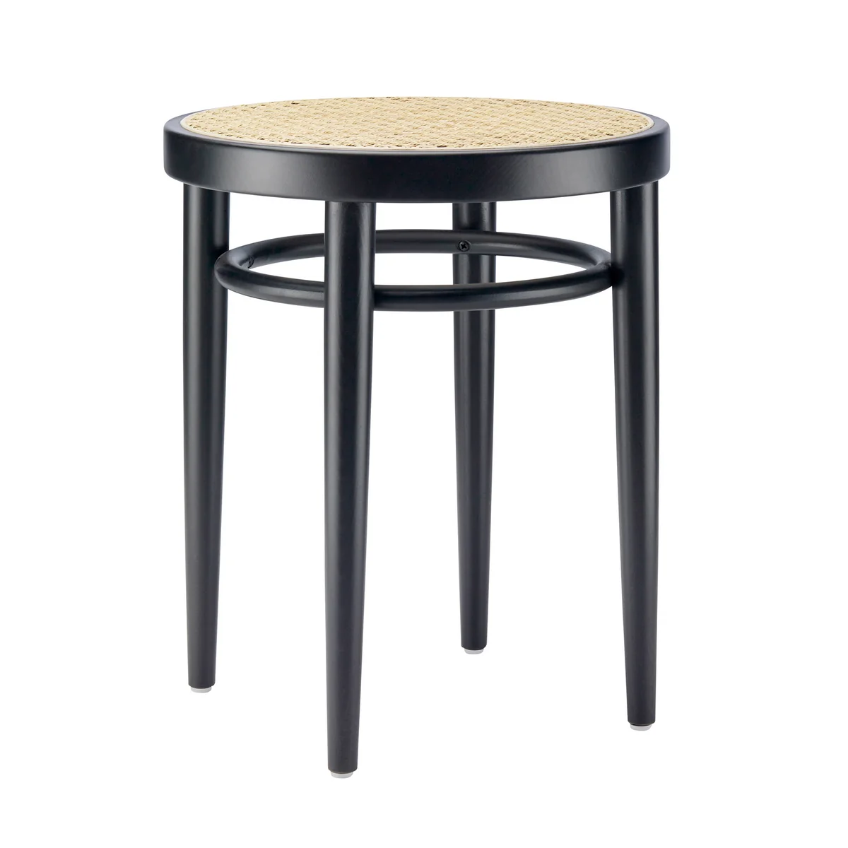De 214 RH kruk van de gebroeders Thonet uit 1800 voor Thonet . In deze klassieke barkruk ontmoet gebogen hout vlechtwerk. De poten van de kruk zijn gemaakt van beukenhout met behulp van een traditioneel buigproces, terwijl een ring van vlechtwerk de barkruk extra stabiliteit geeft en fungeert als voetensteun voor meer zitcomfort. De ronde zitting is verkrijgbaar als een soepele voorgevormde zitting. Het robuuste hout maakt de kruk tot een alledaagse en gezellige metgezel, zowel thuis als in een restaurant.