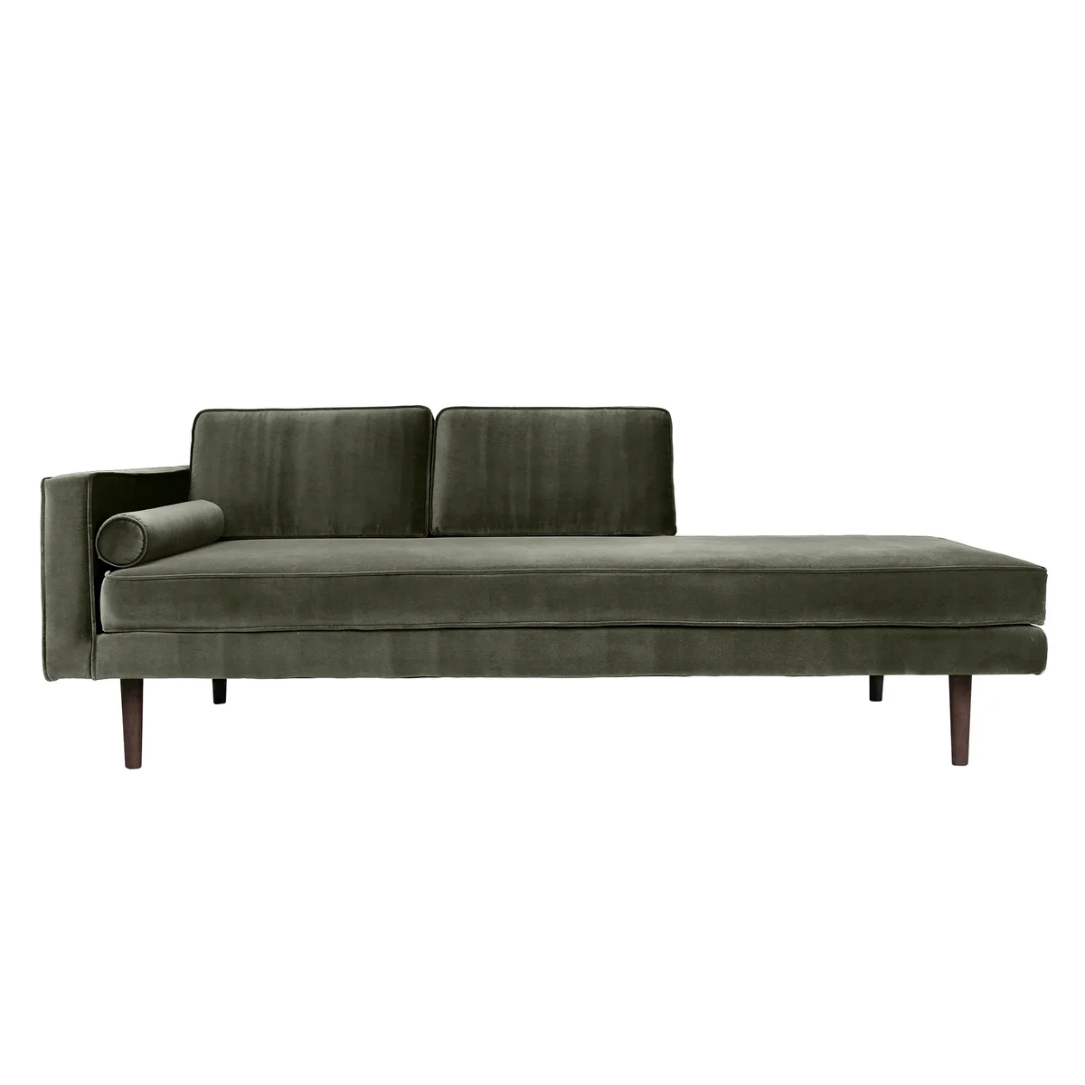 De Wind Chaise Longue van Broste Copenhagen met verschillende hoezen, die zijn vervaardigd volgens de Oeko-Tex® Standard 100. De armleuning is naar keuze links of rechts.