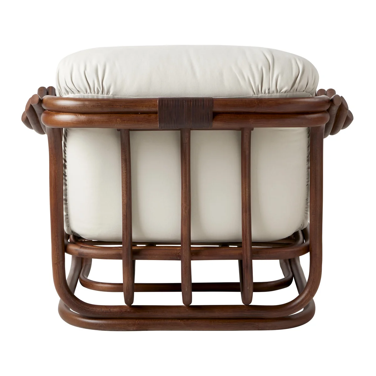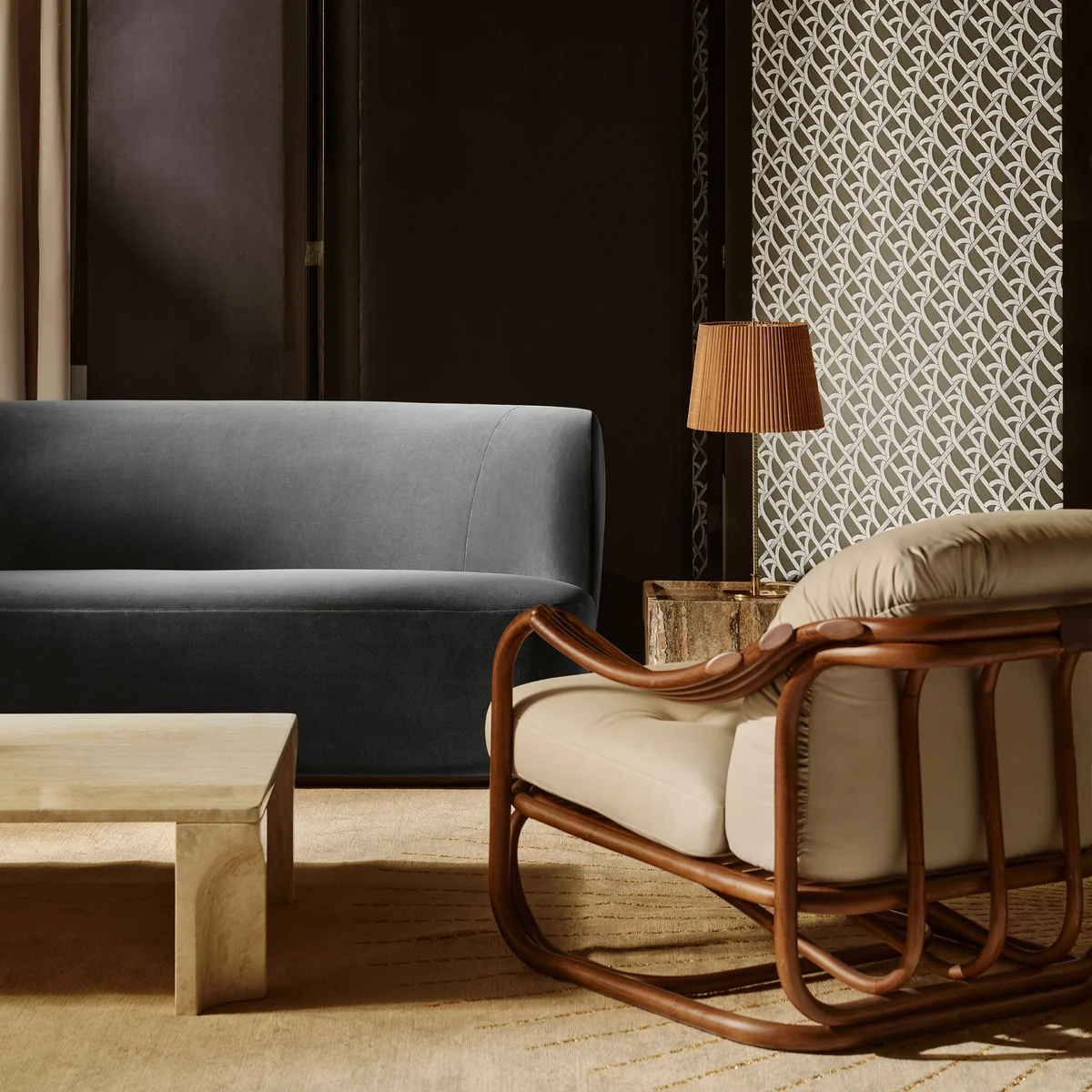 De Poltrona Tria loungestoel van Carlo De Carli combineert natuurlijke materialen met handgemaakte verfijning. De loungestoel is gemaakt van met stoom gebogen rotan dat met de hand wordt gevormd en vastgezet en maakt indruk met zijn gebogen armleuningen en bijzonder harmonieuze silhouet. Twee diepe kussens zorgen voor een hoog zitcomfort, terwijl het open ontwerp een luchtige, natuurlijke sfeer creëert - ideaal voor ontspannende uren in de woonkamer.