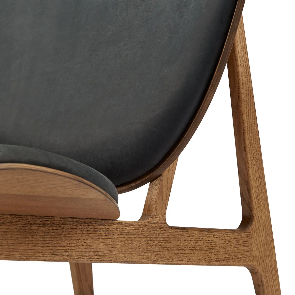 De zitting en rugleuning zijn gemaakt van hoogwaardige, geperst eikenfineer schelpen. De twee schelpen worden in dezelfde mal geperst en omringen het lichaam in een zachte, welving. De poten houden de twee schelpen samen zonder zichtbare gewrichten. Elegant en eenvoudig, maar robuust zonder omvangrijk te lijken, de Elephant Lounge stoel past goed in elke ambiance en biedt een hoog zitcomfort.