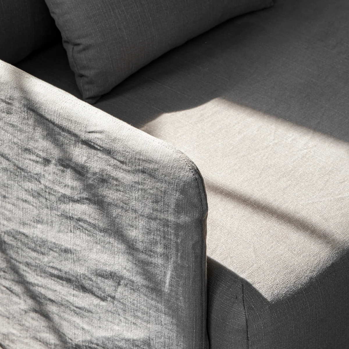 De verwisselbare hoes is gemaakt van 35% linnen en 65% katoen.