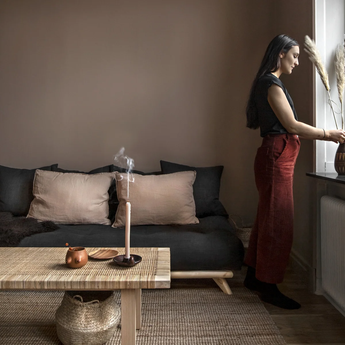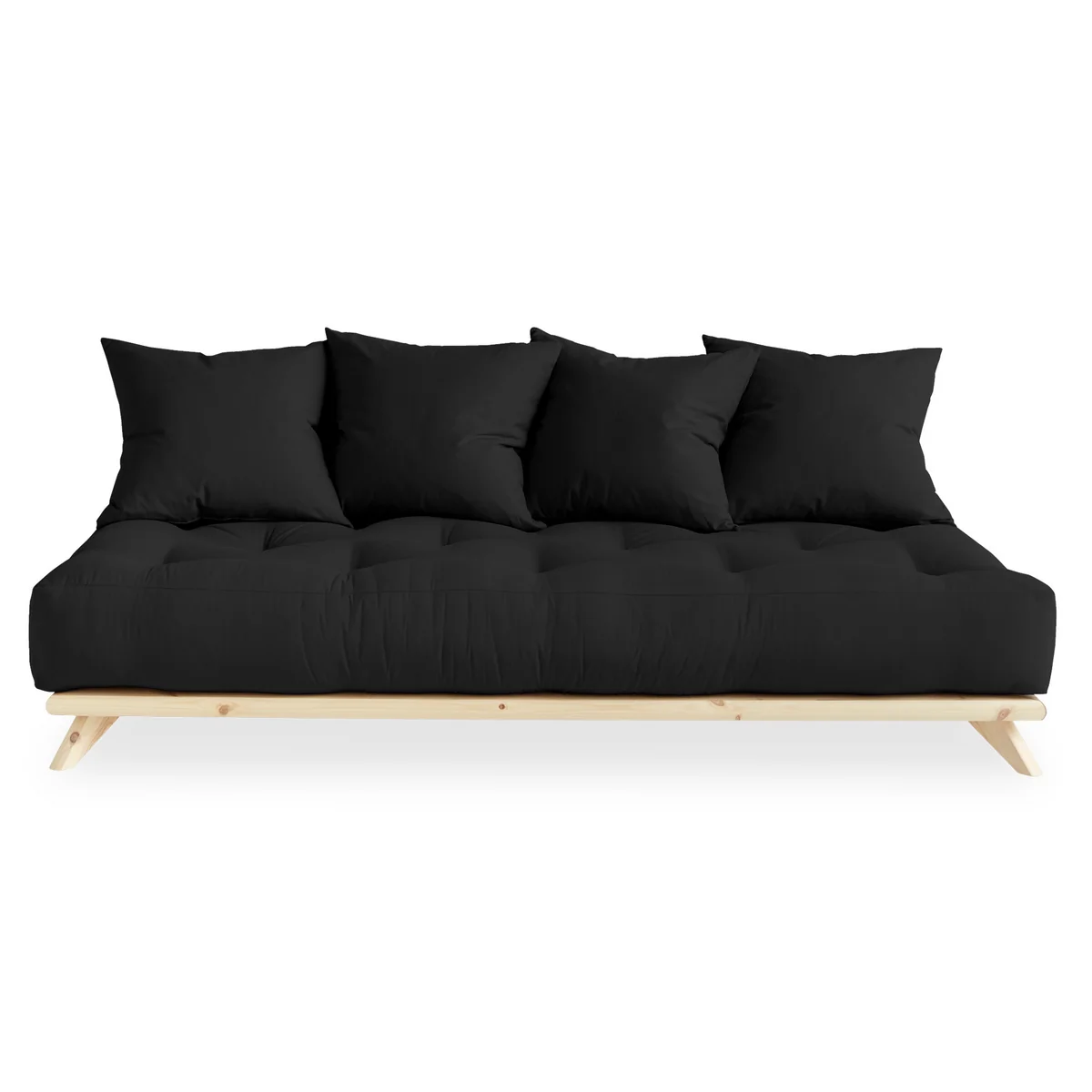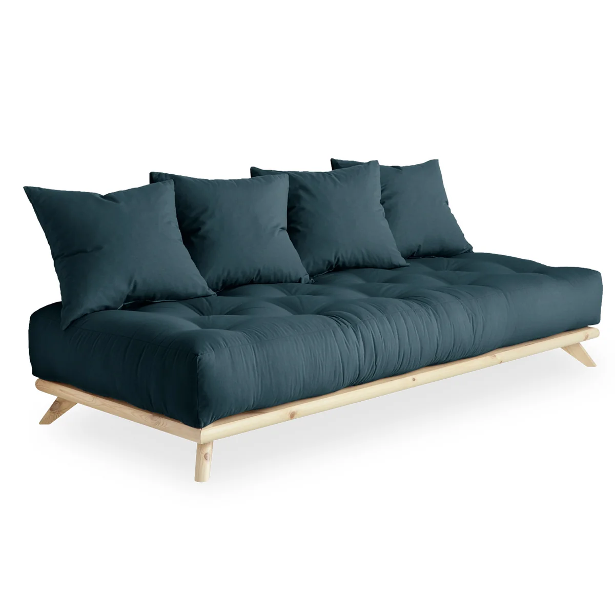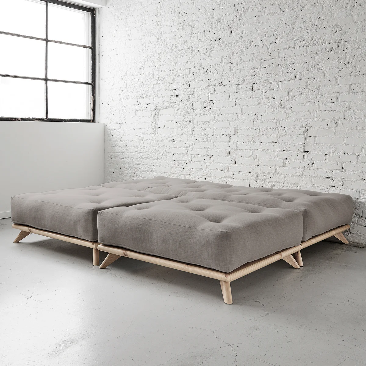 De Senza bank van Karup Design is een dagbed, dat een bank wordt door vier grote kussens. De bank bestaat uit een laag houten frame met een comfortabele futon. Als de kussens worden verwijderd, wordt de bank een comfortabel bed om te relaxen of om te overnachten.