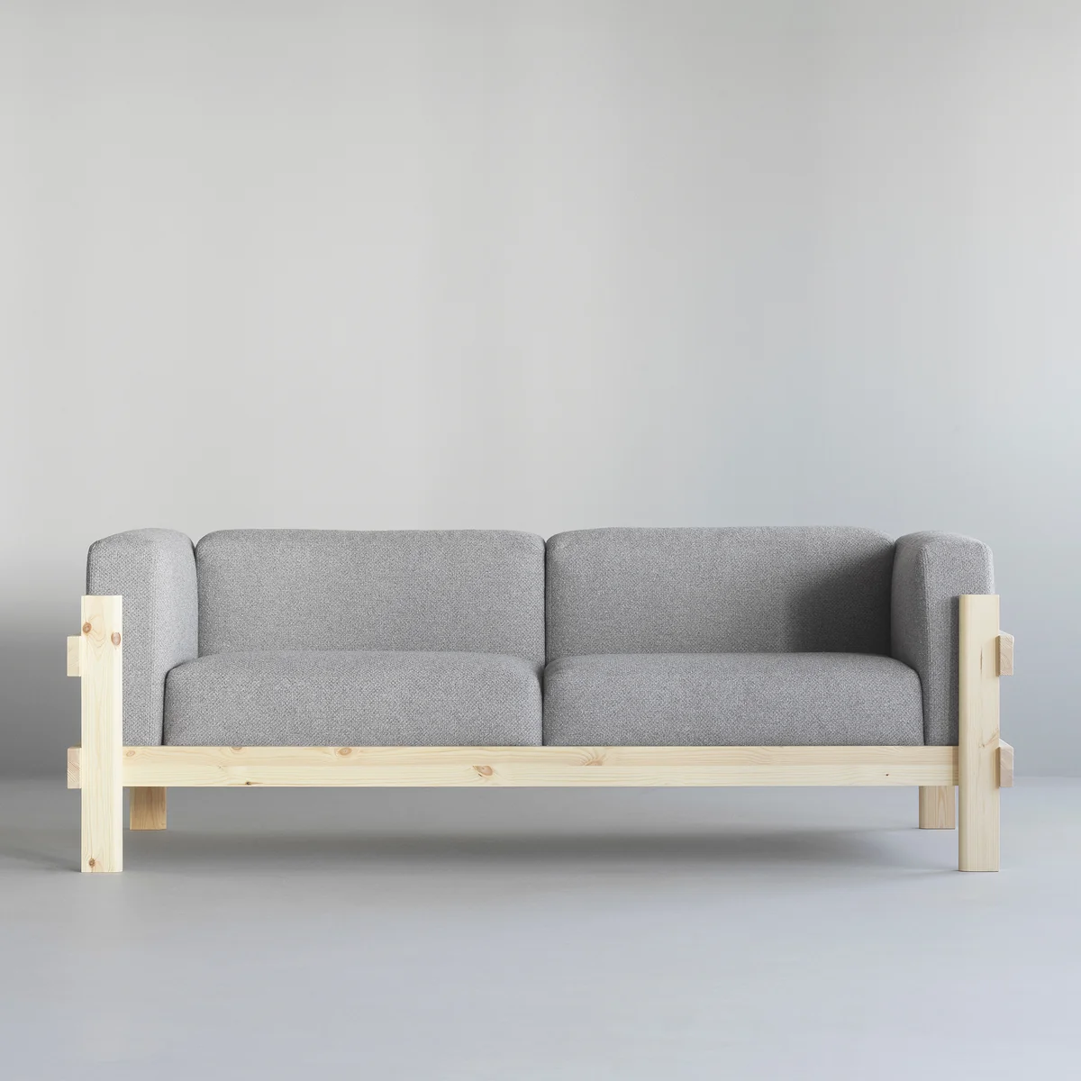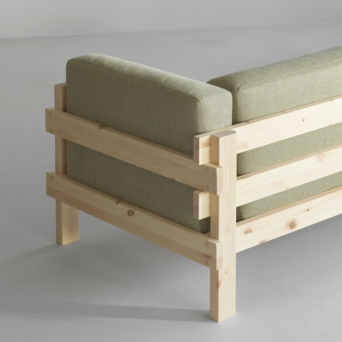 De nauwkeurig samengevoegde houten balken benadrukken de kwaliteit van het vakmanschap en ontwikkelen na verloop van tijd een natuurlijk patina, waardoor de bank extra karakter krijgt. Geïnspireerd door banken uit de jaren 1950 en 1960, waar het zichtbare frame deel uitmaakte van de esthetiek, vertaalt deze eerlijke constructie Kube deze eerlijke constructie naar een hedendaags woonconcept.