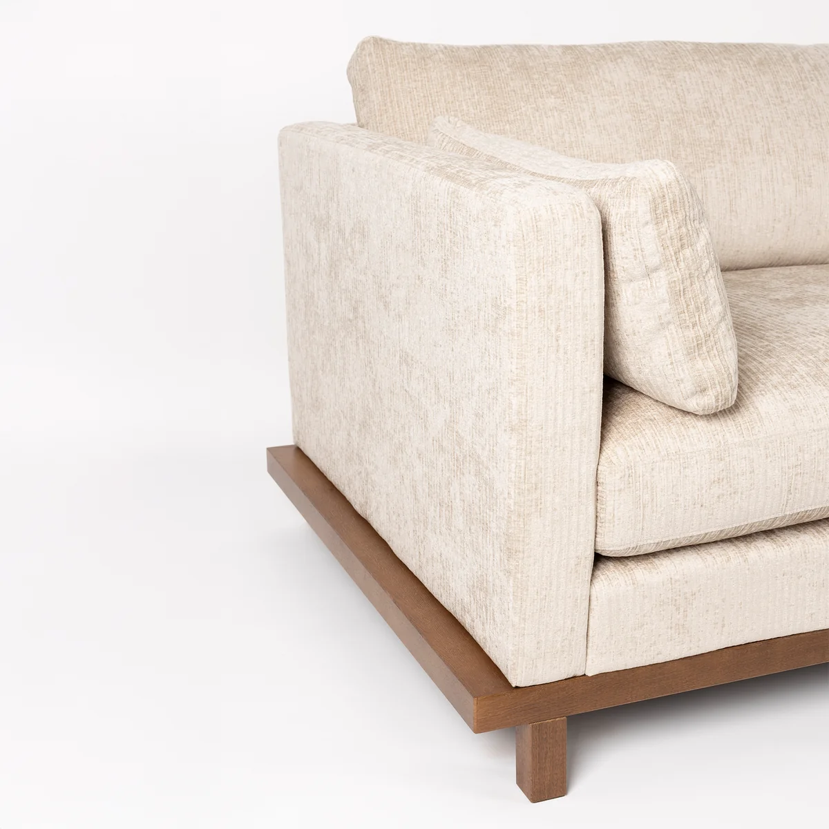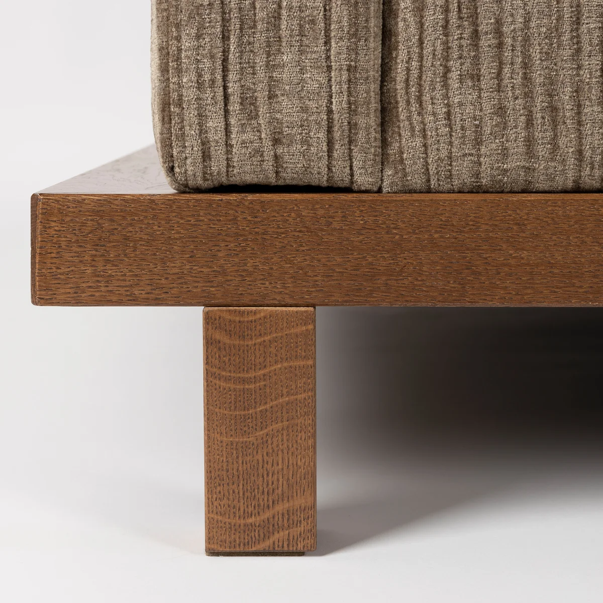 De zittingen hebben royale afmetingen en zijn bekleed met een zware, zachte stof met een subtiel, onregelmatig streeppatroon dat doet denken aan traditionele Japanse biezen matten. Natuurlijke kleuren onderstrepen de rustige uitdrukking van het meubilair en geven het een tijdloze elegantie. Blossom is verkrijgbaar in verschillende maten en past zich flexibel aan verschillende kameromstandigheden aan - van een compacte flat tot een ruime loft.