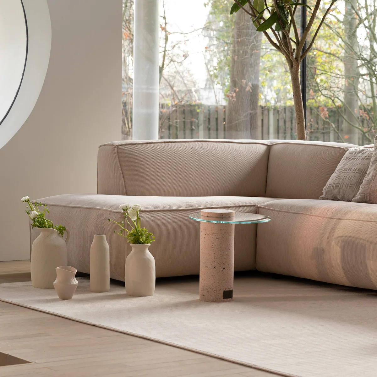 De Fat Freddy hoekbank van Zuiver nodigt je uit om het alledaagse leven achter je te laten. Met zijn zachte, gestructureerde ribstof oppervlak, natuurlijke kleurschakeringen en diepe, royale zitting is hij perfect voor urenlang relaxen. Het ontwerp is eenvoudig gehouden, maar maximaliseert het comfort - precies goed voor moderne woonruimtes met een feel-good factor.